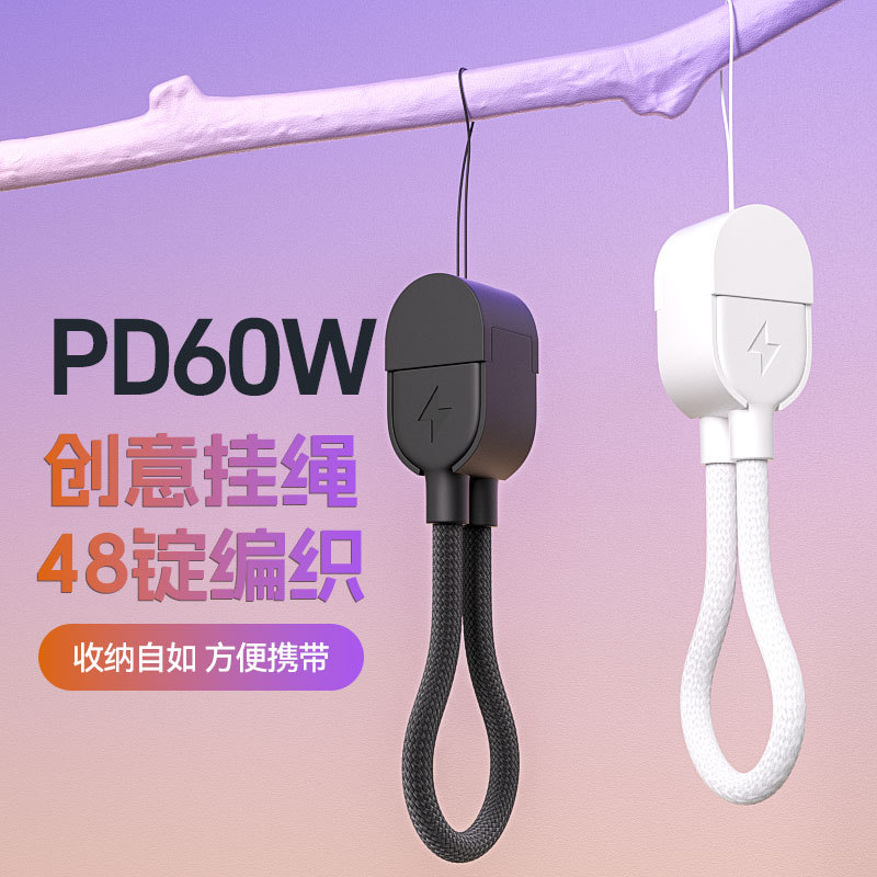 48锭编织充电线PD60W充电宝适用苹果手机挂绳线快充线typec数据线