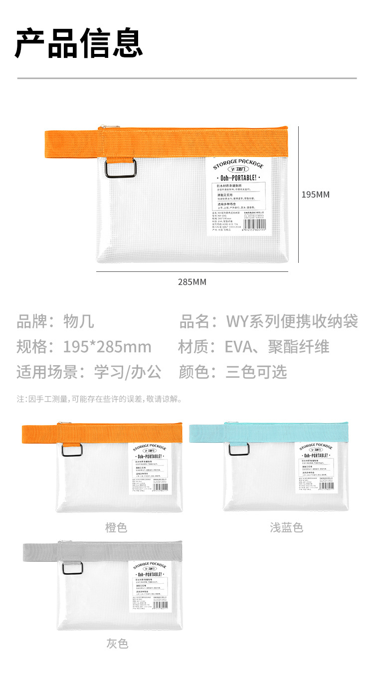 物几 WY手提式收纳袋透明防水大容量学生考试补习文件资料试卷