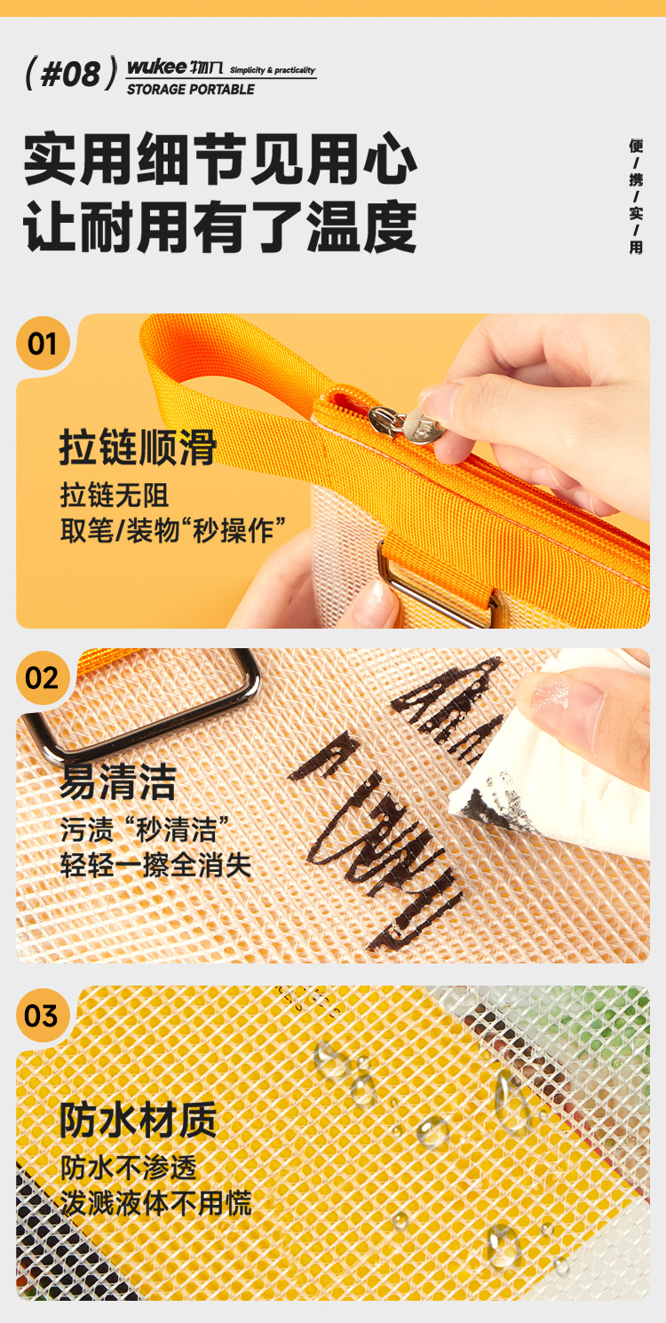 物几 笔插式文件袋学生科目补习袋防水男女生大容量资料收纳袋