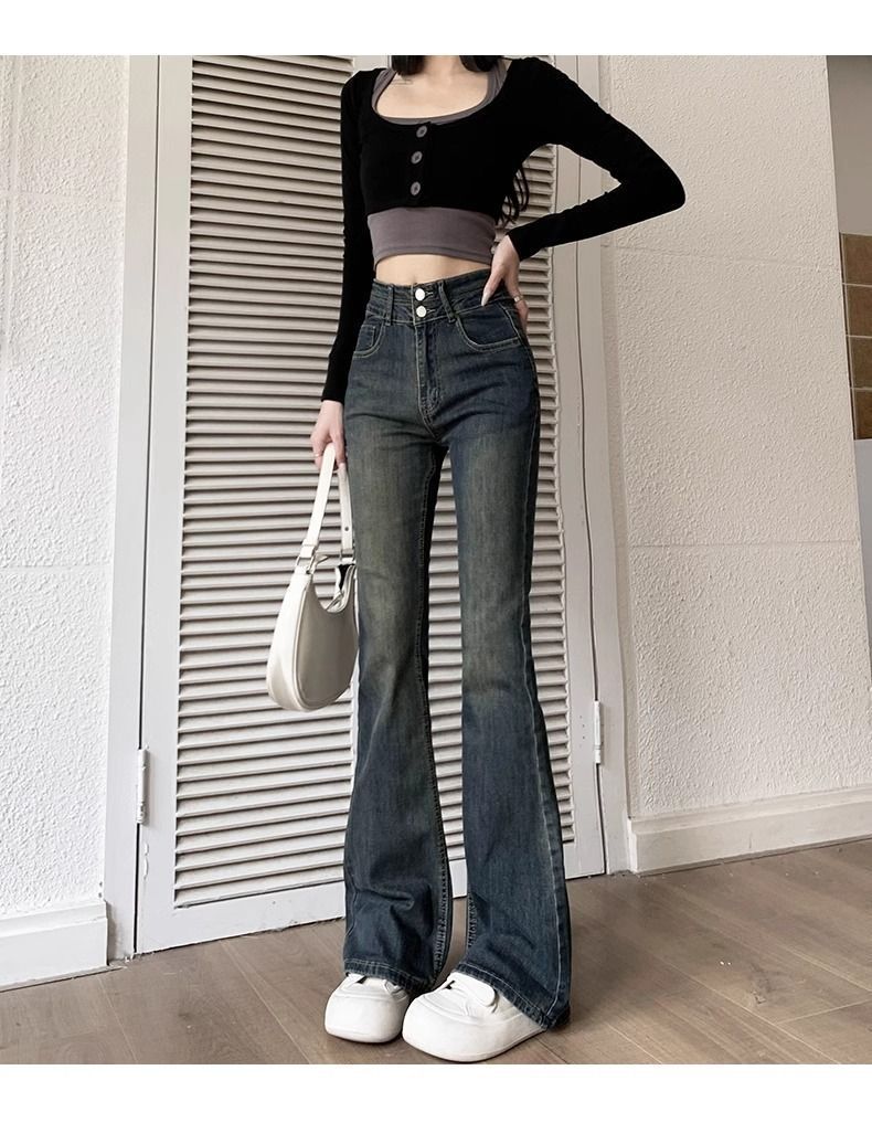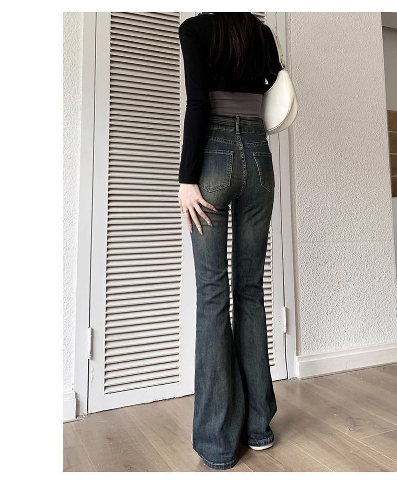 水泥灰微喇牛仔裤女加绒加厚2025秋冬新款小个子复古高腰马蹄裤子