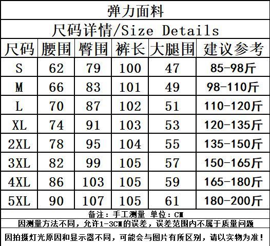 尺码 S 建议88-100斤,M 建议100-110斤,L 建议110-120斤,XL 建议120-135斤,2XL 建议135-150斤,3XL 建议150-165斤,4XL 建议165-180斤,5XL 建议175-200斤