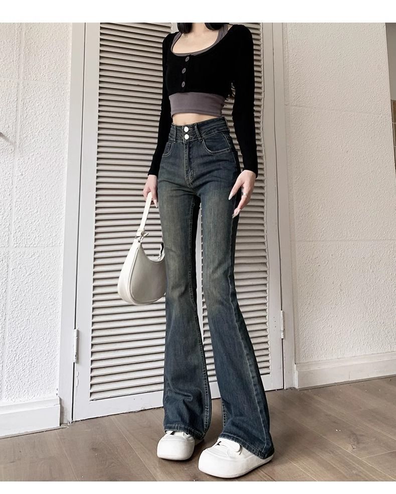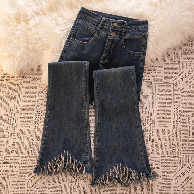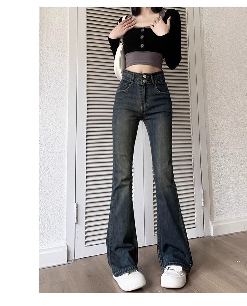 セメントの灰の小さいラッパのジーパンの女性の2024春秋の新型の高い腰はやせている毛の辺の小さい小さい毛の辺のラッパのズボンを現します。