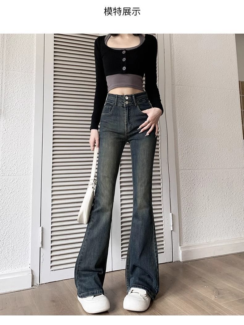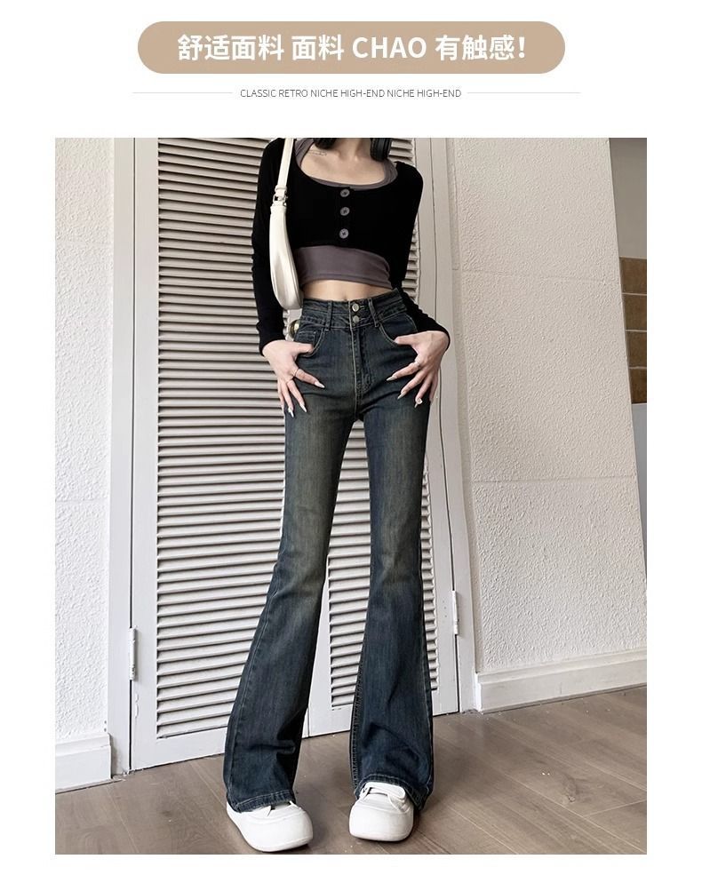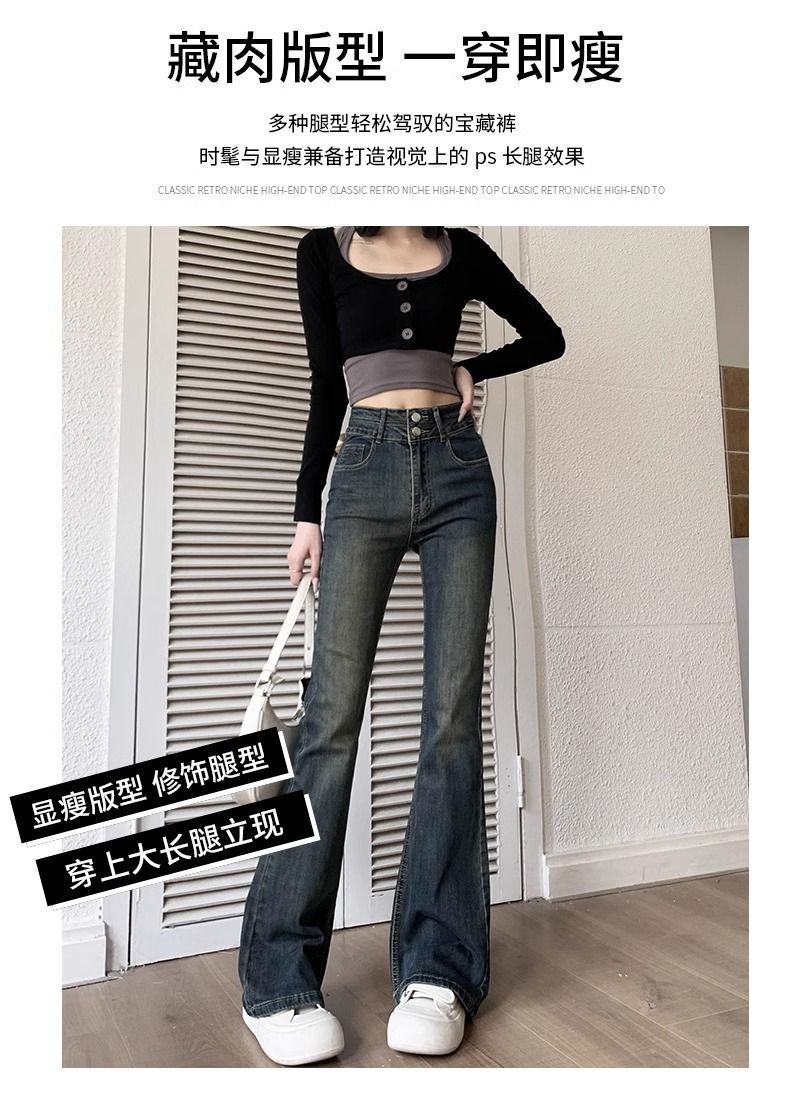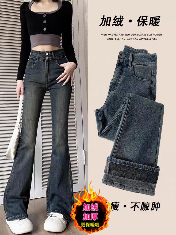 复古微喇叭牛仔裤女秋冬外穿加绒加厚小个子高腰显瘦马蹄拖地长裤