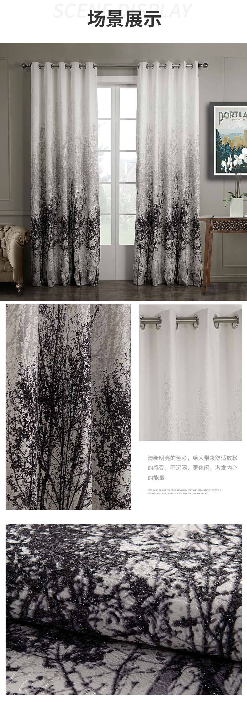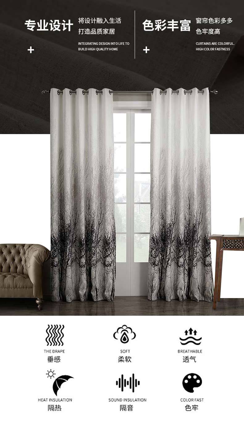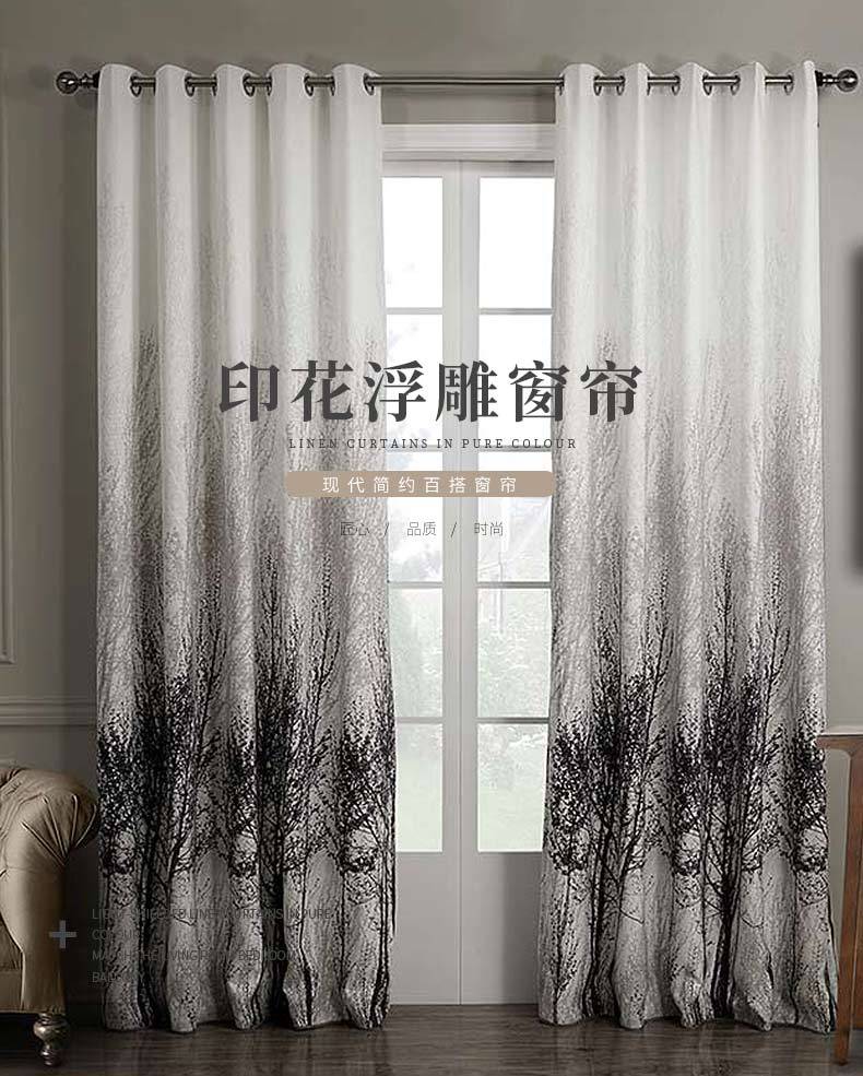 新款印花窗帘浮雕窗帘布 卧室客厅遮光窗帘布 印花成品窗帘跨境