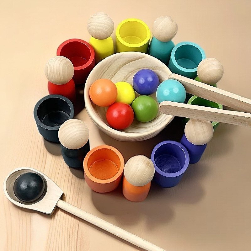木製 7 色ボールとカップおもちゃモンテッソーリ早期教育クリップビーズカラーマッチング子供の色分類感覚教育補助