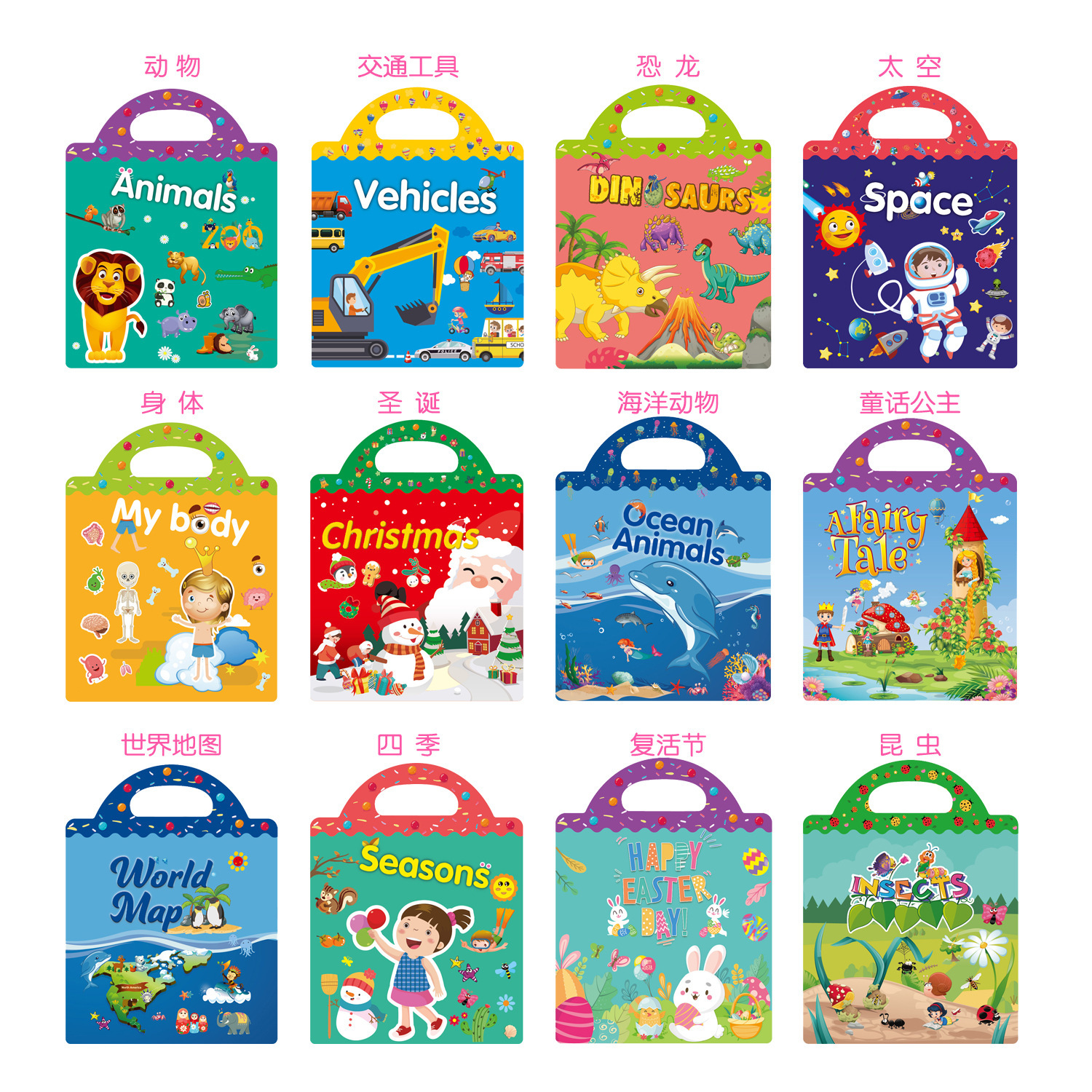 国境を越えた子供向けステッカーブック、早期教育、集中力育成、繰り返し貼れる動物、恐竜、海のシーン、豊富な知育効果