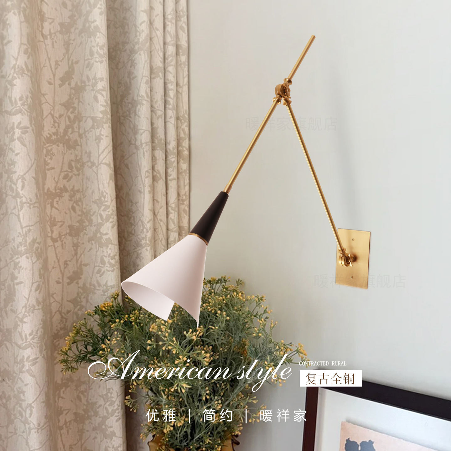 中古全铜折叠摇臂伸缩设计师客厅灯书房卧室床头阅读壁灯背景墙灯