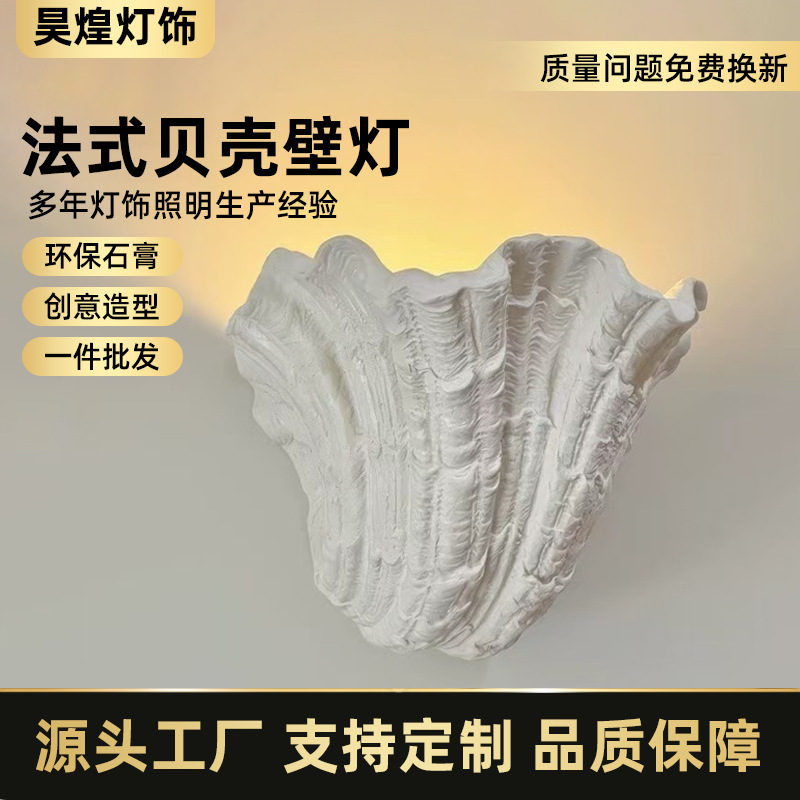 法式贝壳石膏灯北欧中古明装壁灯卧室床头灯玄关走廊过道氛围灯