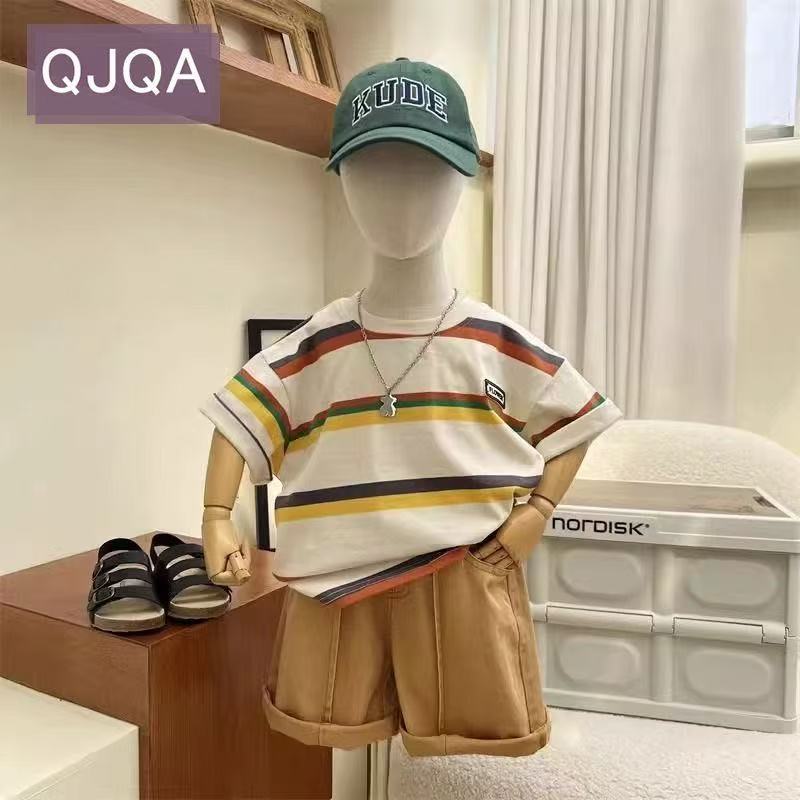 男の子と女の子の半袖Tシャツ新しい多用途ラウンドネック西洋スタイルストライプカジュアル子供ベビートップス子供服トレンド