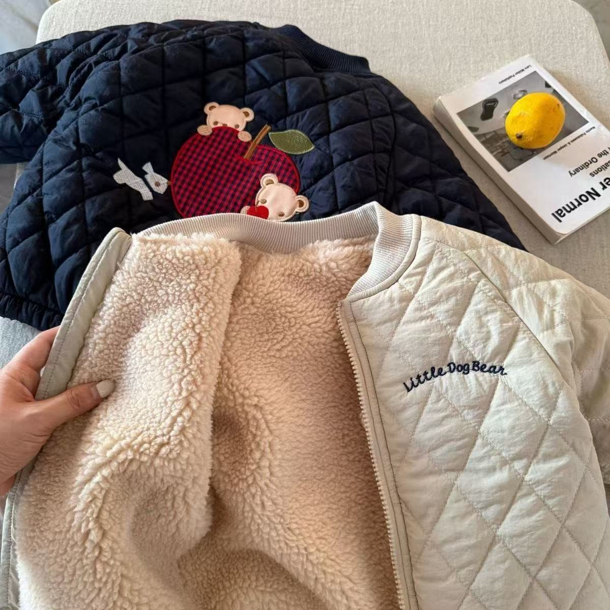 加绒棉服加厚儿童棉衣新款男女童冬季棉袄外套刺绣保暖夹克