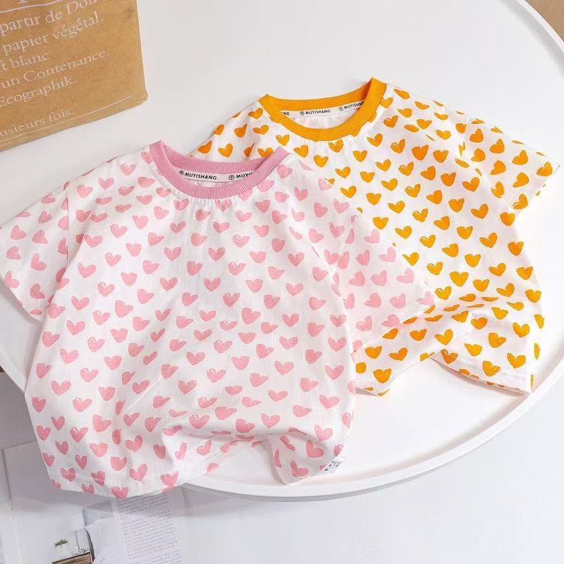 女の子半袖Tシャツ2025夏新スタイルベビー女の子おしゃれ夏服子供ピーチハート半袖万能トップストレンディ
