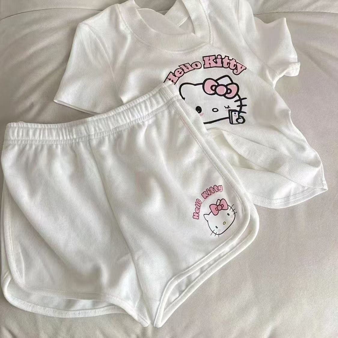 2025年新作夏ハローキティ子供スーツかわいいプリント半袖万能ショーツ