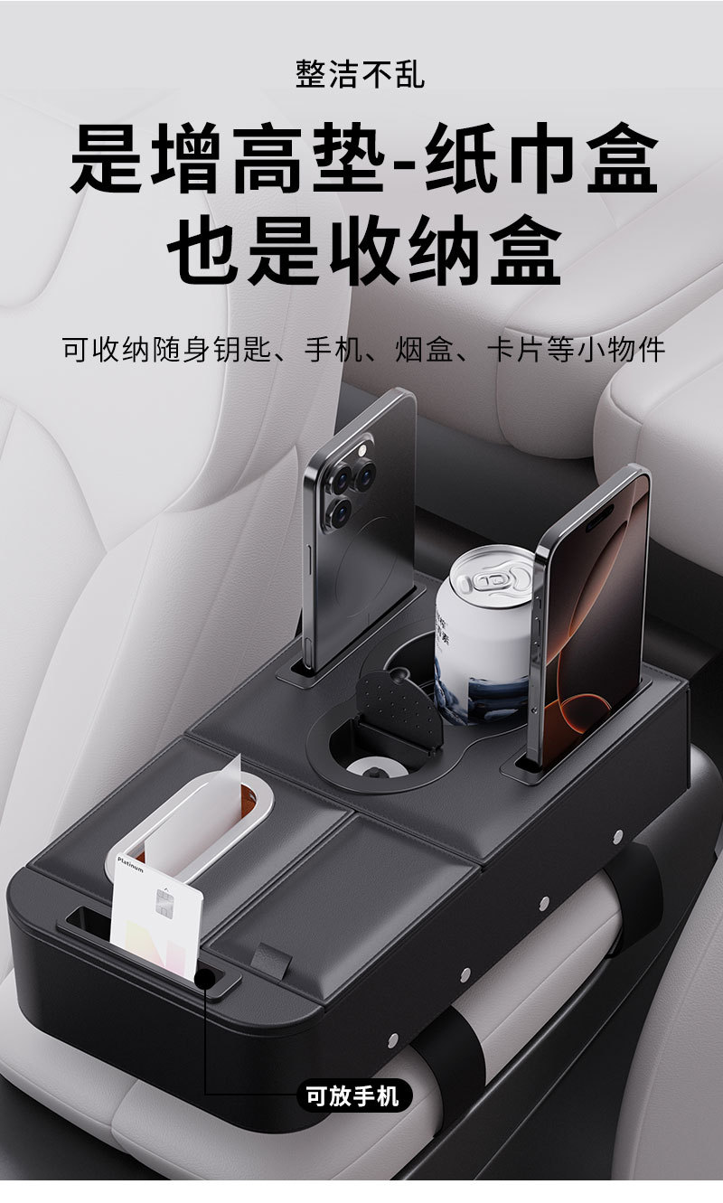 2025汽车中央扶手箱垫多功能车载纸巾盒收纳盒水杯架四合一增高垫