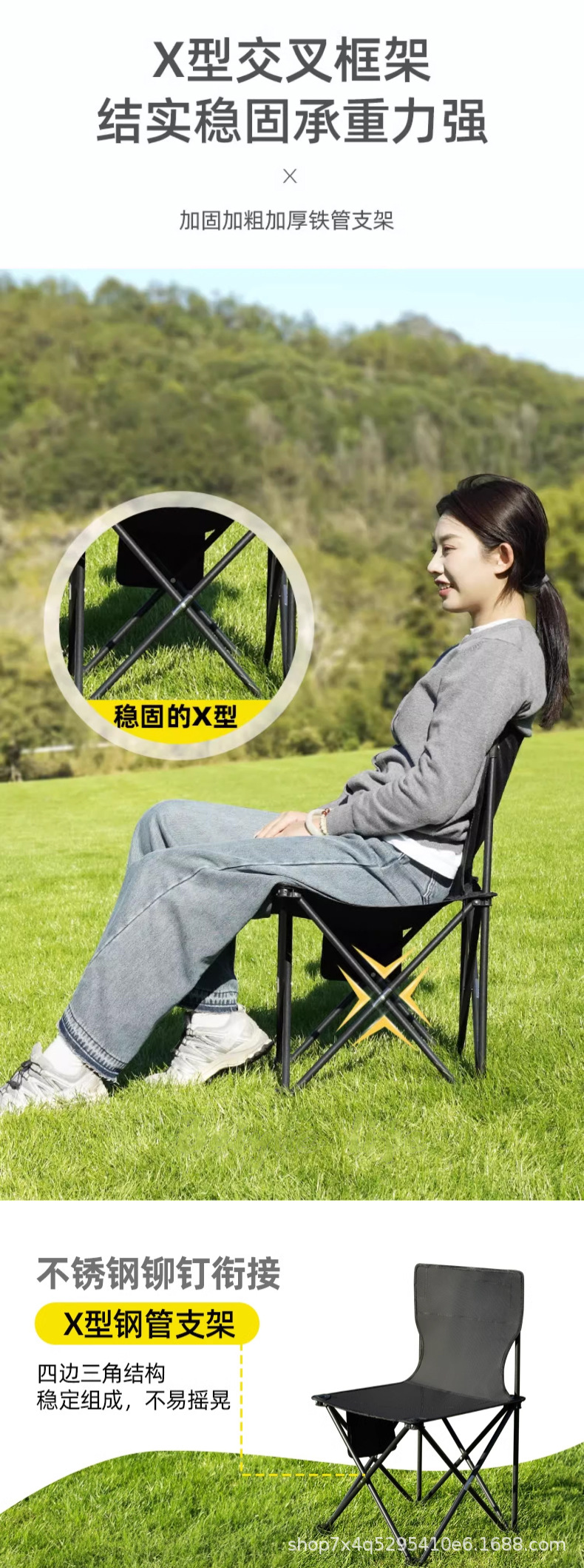 新しい金属折りたたみ椅子屋外折りたたみ椅子ピクニックポータブルムーンチェアキャンプキャンプ用品卸売