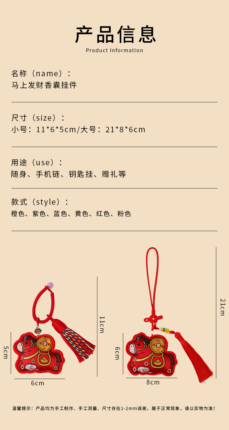 中国风马年香囊挂件立体香包摆件马年礼品平安符护身符好运香包