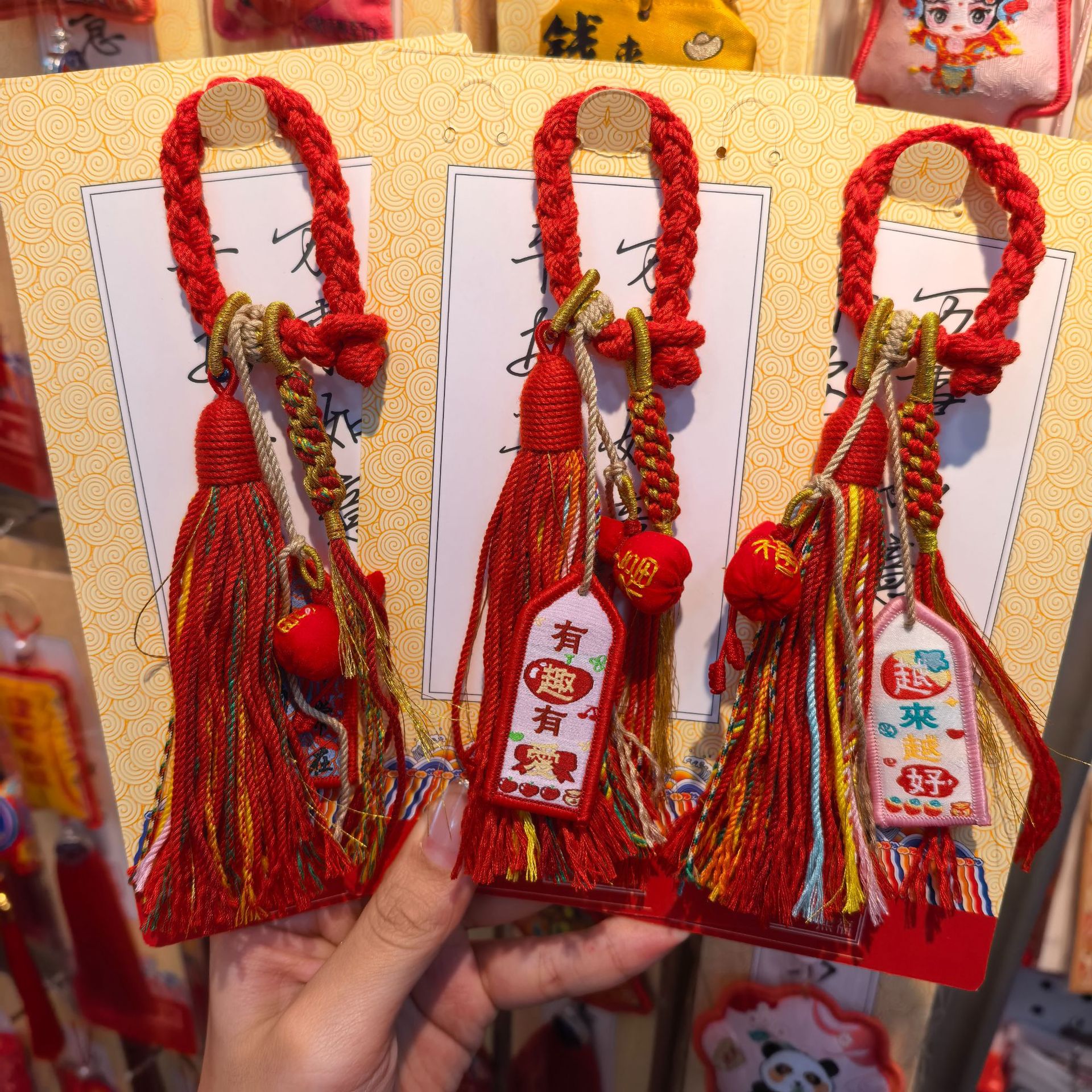 藏式手搓棉绳流苏祈福安康好运挂饰送礼装饰小礼品车载挂件批发