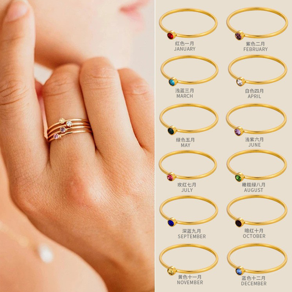 ヨーロッパとアメリカのファッション 12 月リング女性のためのシンプルな人気の多用途ダイヤモンド誕生石ステンレス鋼リング卸売