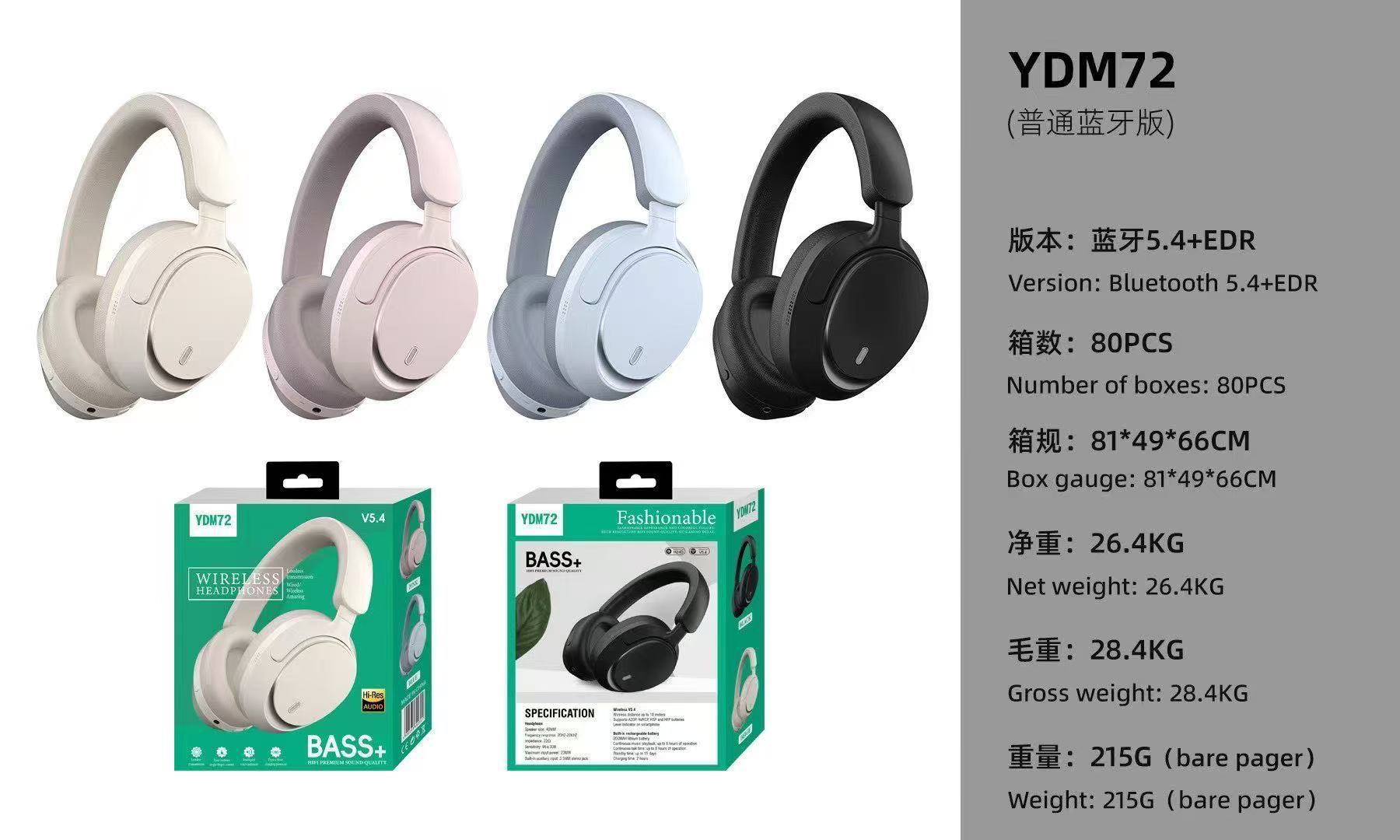 跨境新款YDM72头戴式蓝牙耳机高档高颜值金标音质降噪长续航手机