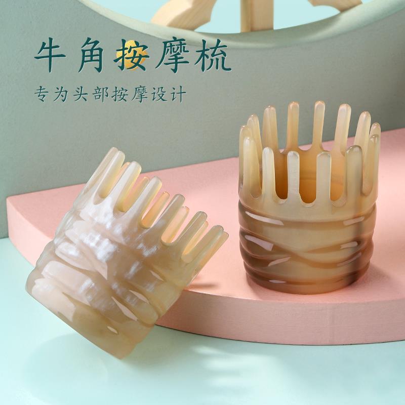 工厂批发牛角圆筒按摩梳子头部经络天然疗头皮刮痧洗头专用按摩器