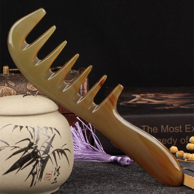 天然本物の牛角ヘッドマッサージスクレーピング経絡コーム大歯広歯帯電防止多機能コーム羊角コーム