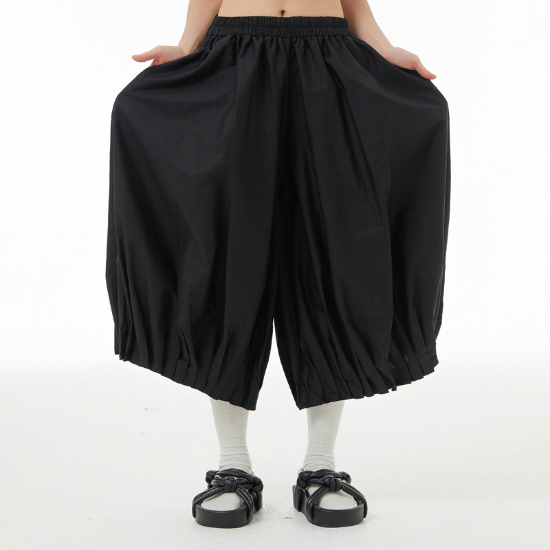 韓国風プリーツ七分丈パンツ2025秋新作大きいサイズゆったり着痩せレディーススカートパンツワイドパンツ1332