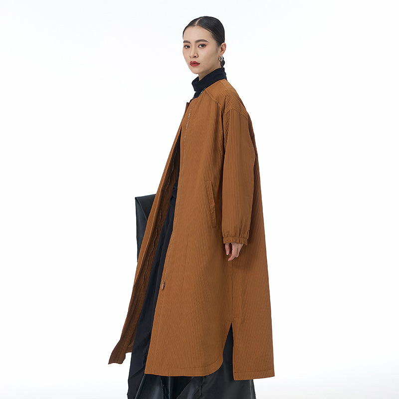 ヨーロッパとアメリカの気質のロングコートノーカラー2025春新作大きいサイズ高級婦人服ゆったり痩身トレンド32063