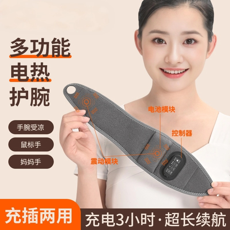 石墨烯电热护腕保暖手腕艾灸热敷充电式三档控温按摩震动发热神器