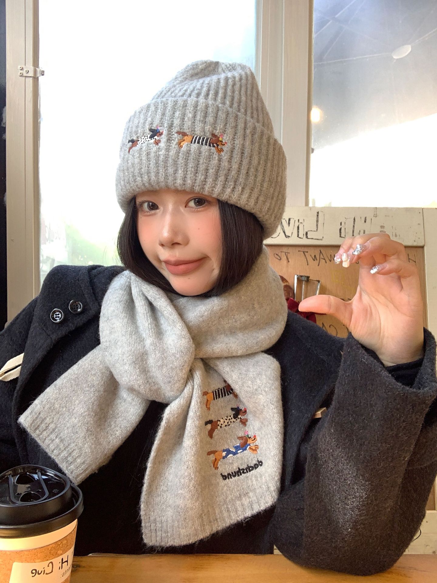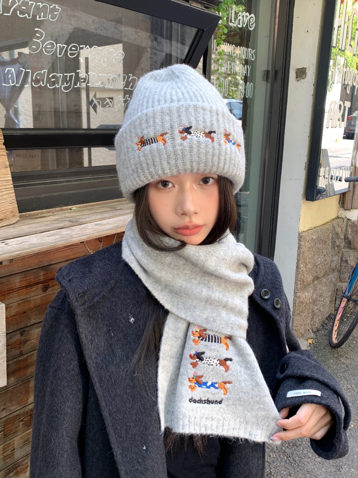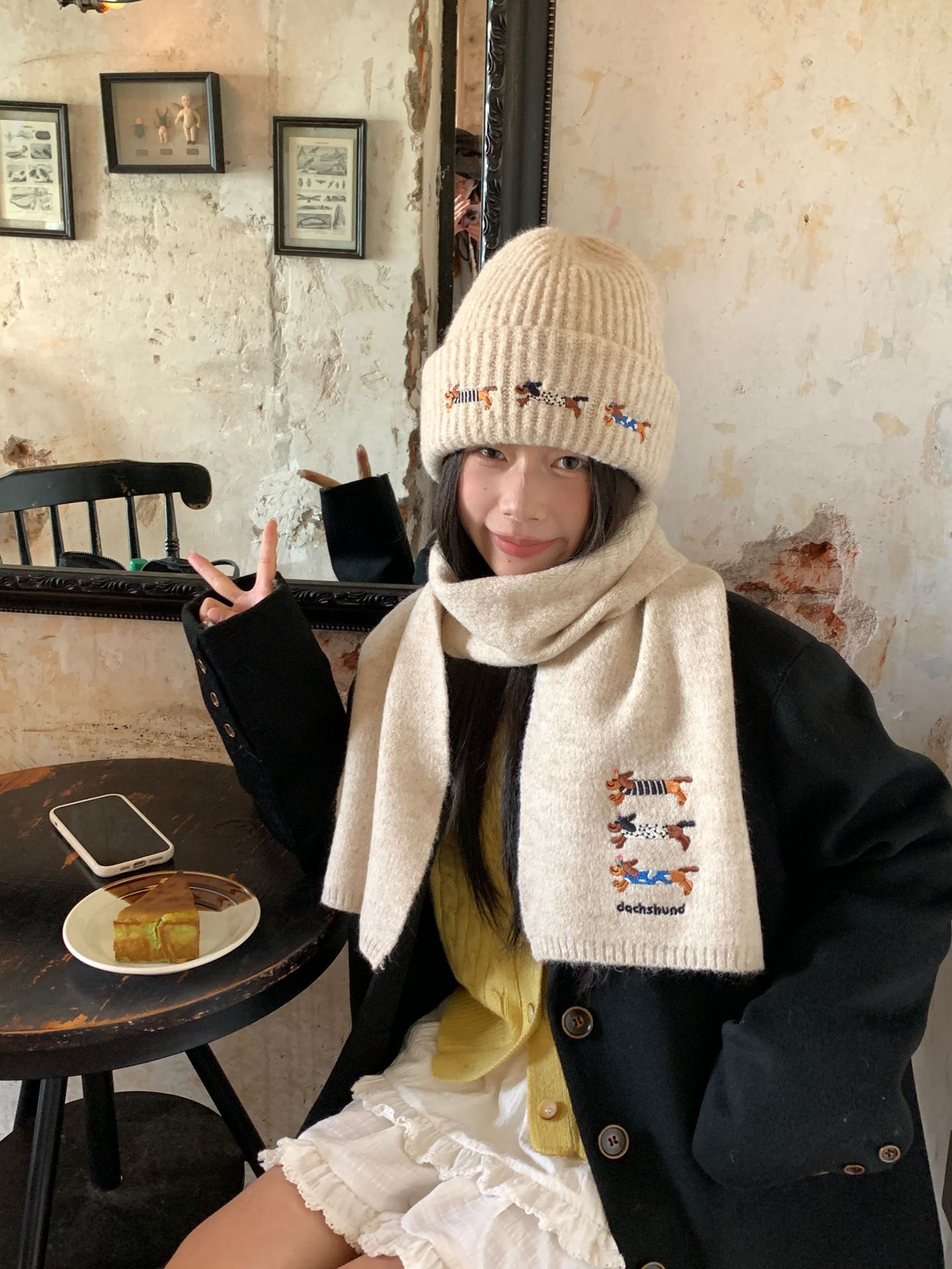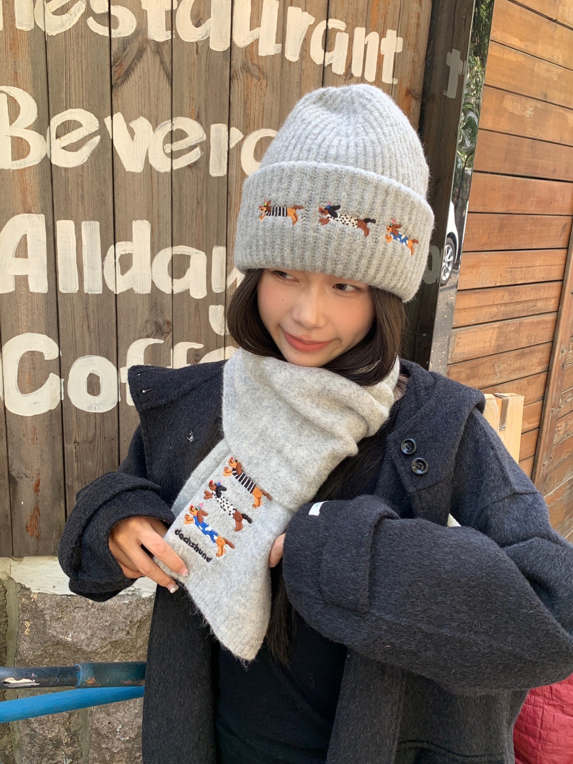 冬季新款帽子围巾套装女可爱腊肠狗毛线帽百搭保暖针织帽时尚围巾