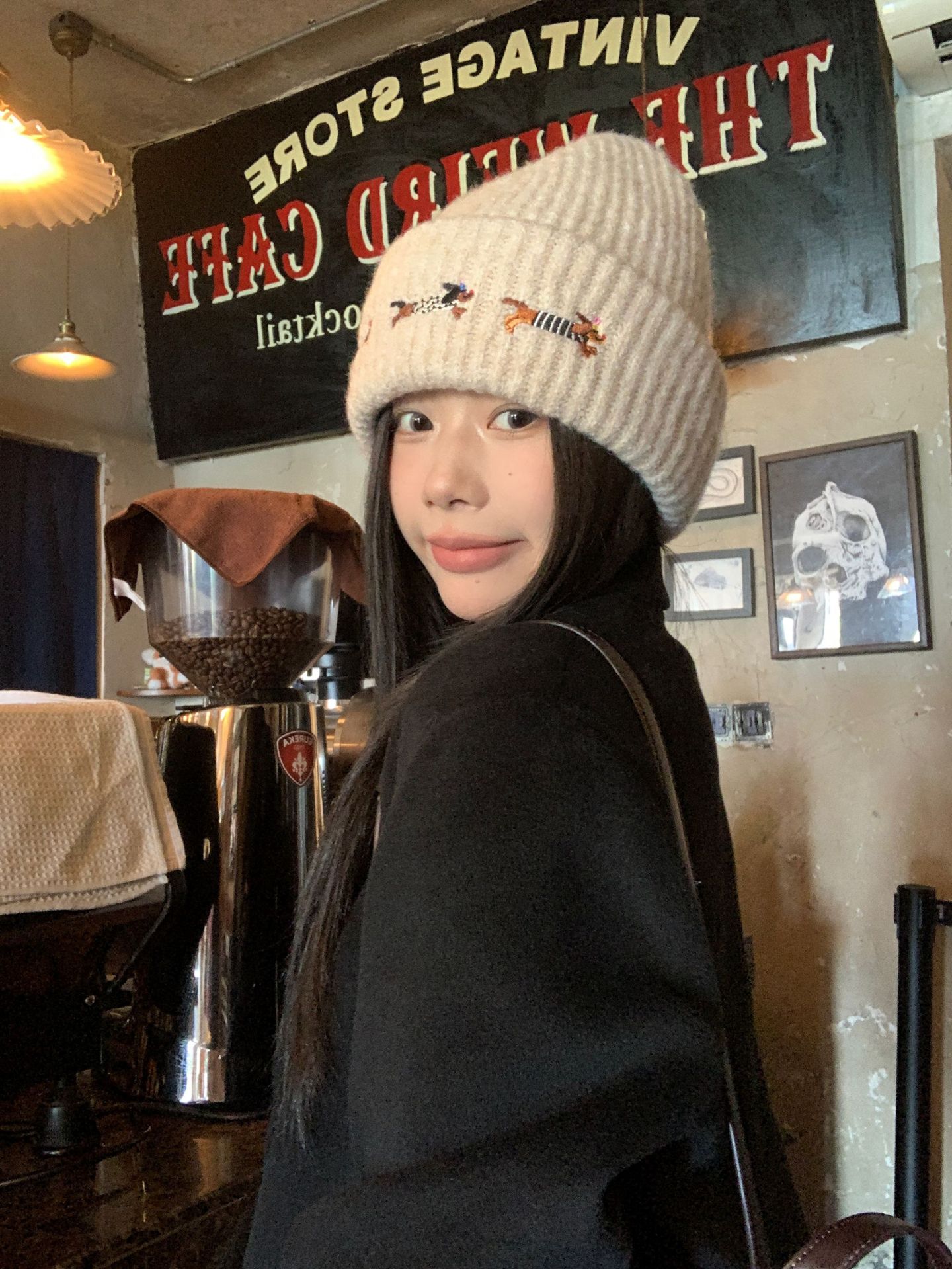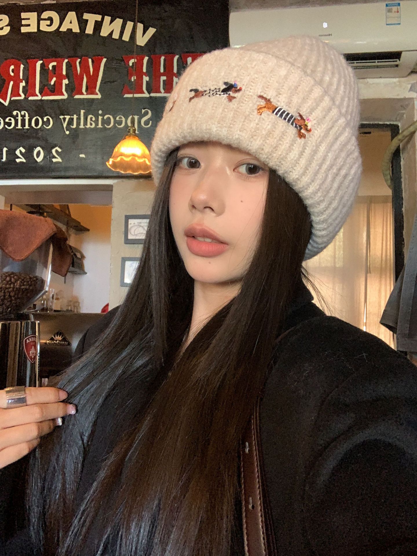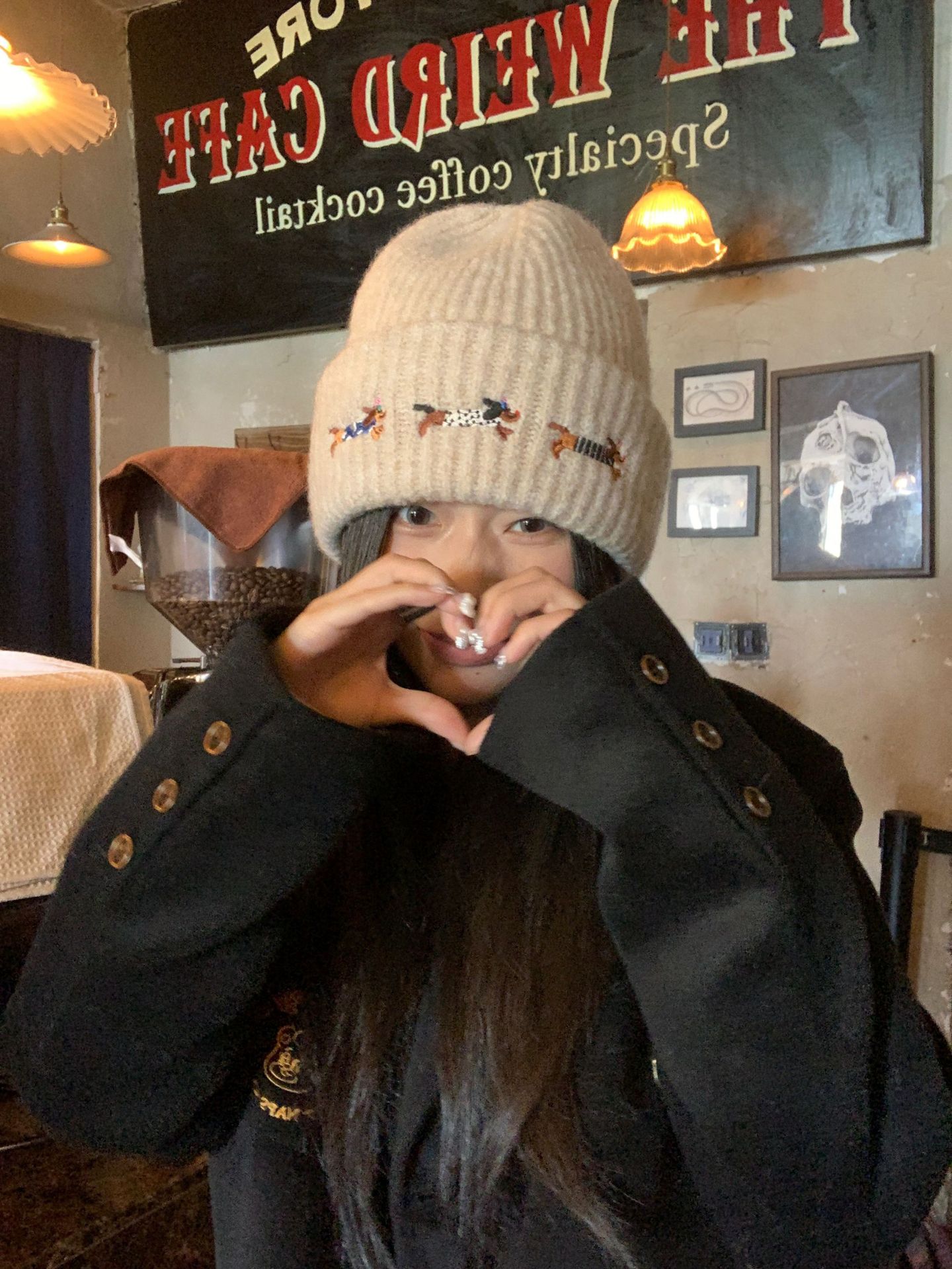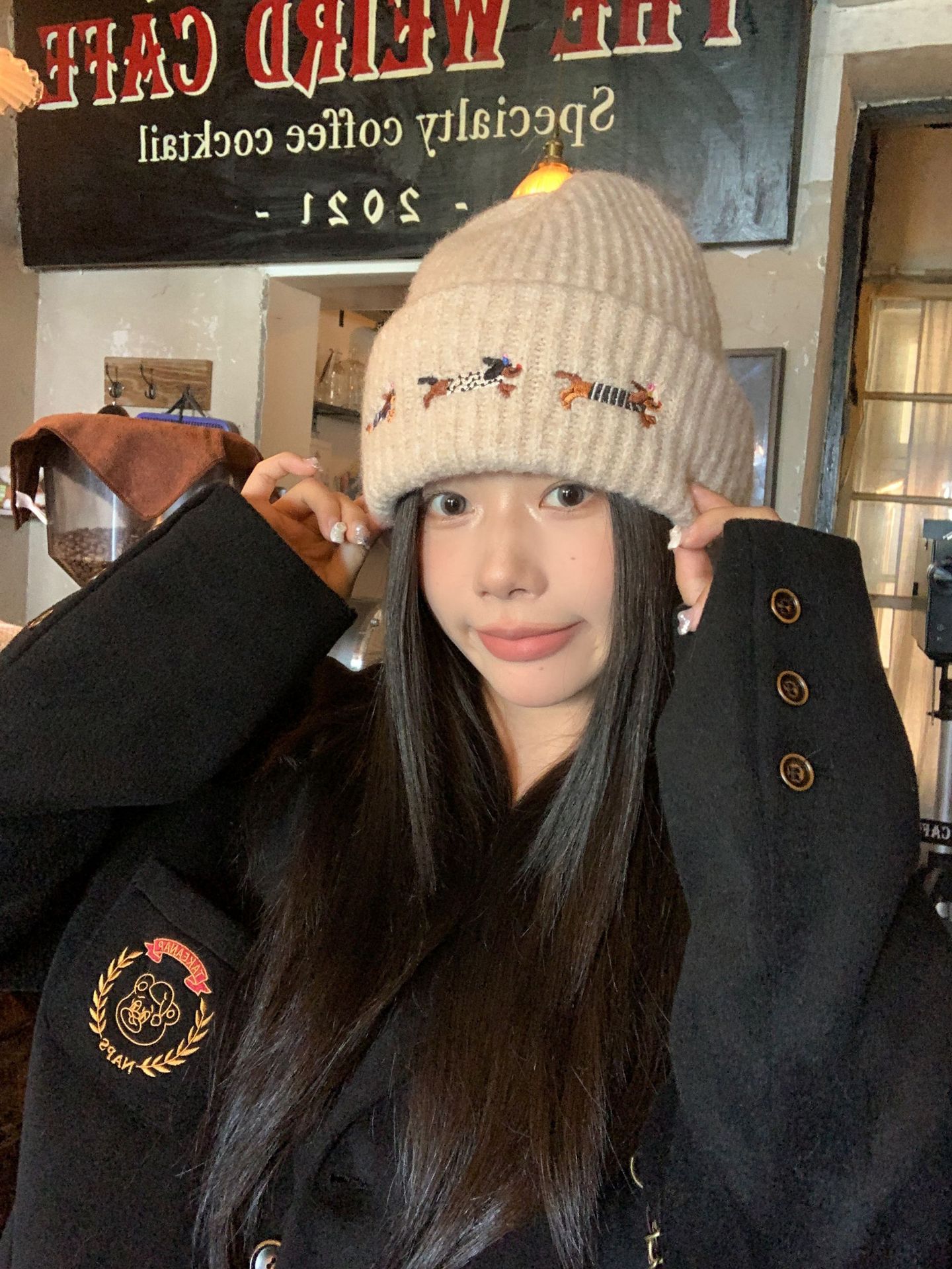 冬季新款帽子围巾套装女可爱腊肠狗毛线帽百搭保暖针织帽时尚围巾