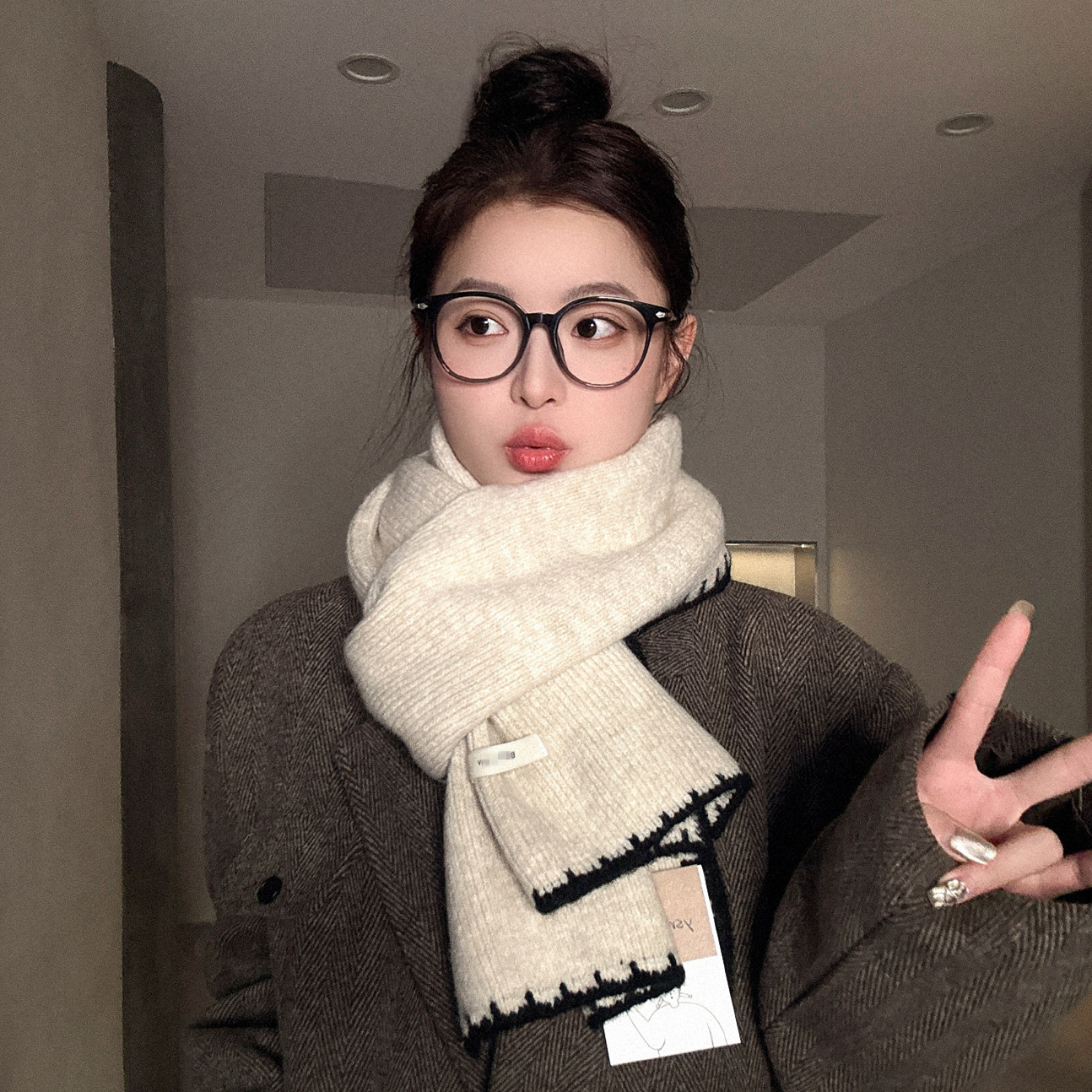 高级感韩版百搭围巾女秋冬季软糯针织仿羊绒护颈围脖2025新款潮