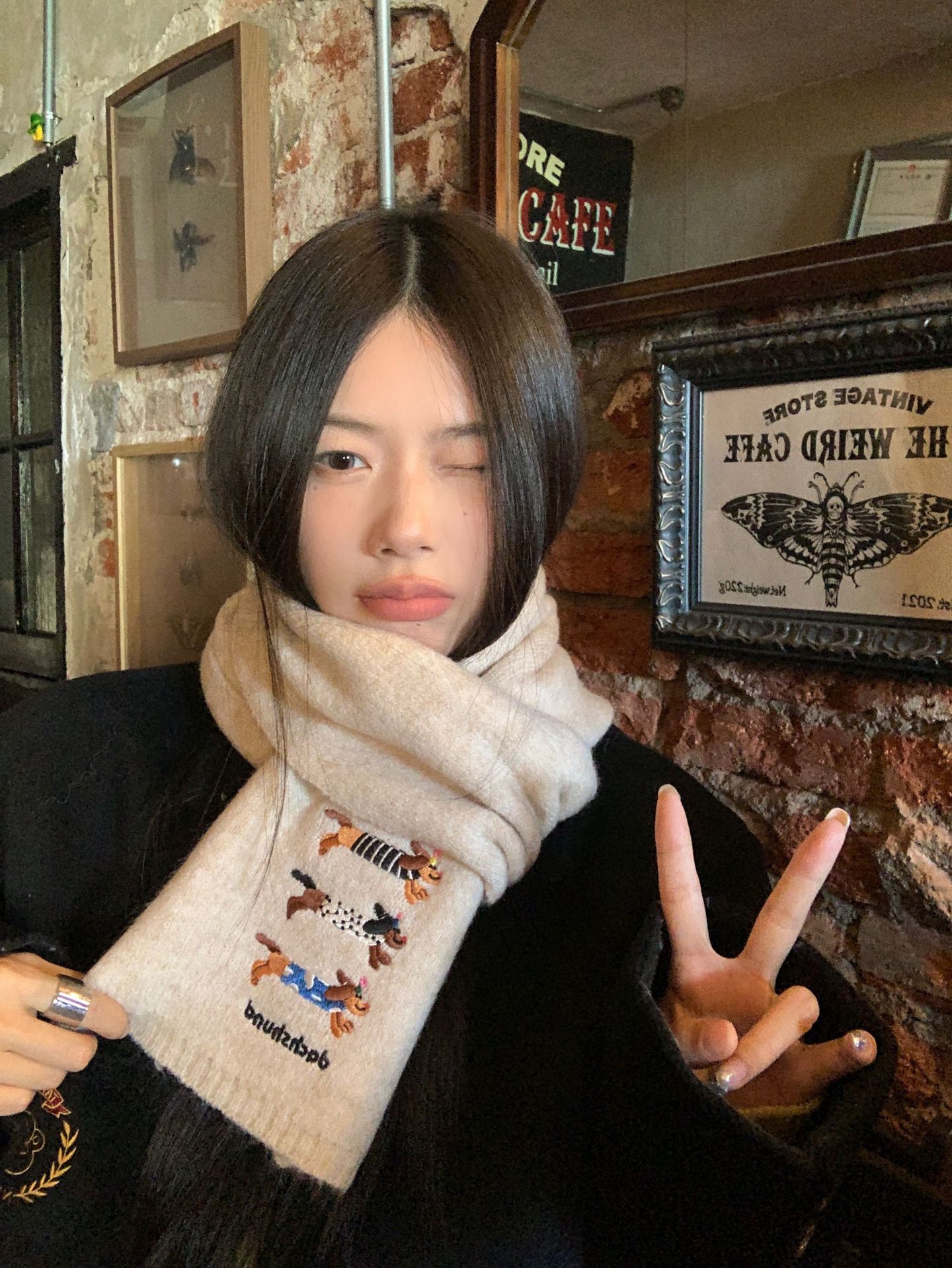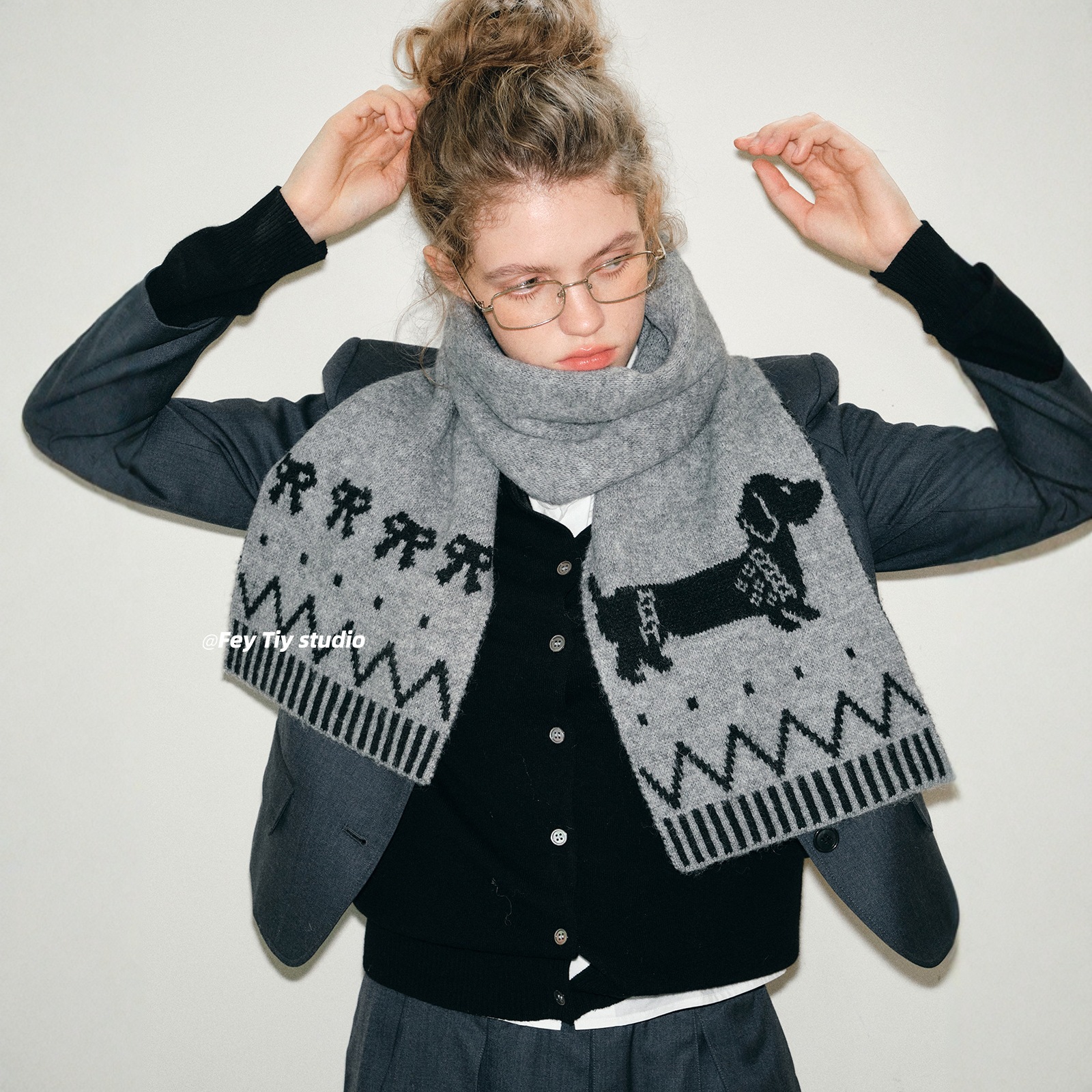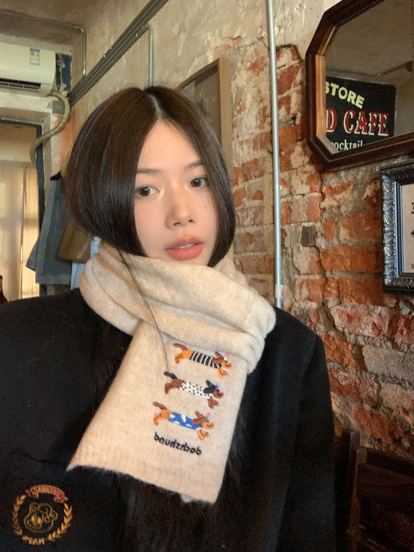 英伦风2025新款时髦腊肠狗冬季加厚保暖围巾女休闲百搭针织围脖男