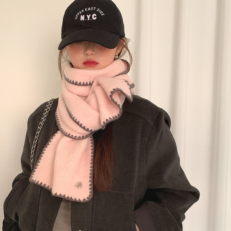 韩系氛围感粉色围巾女2025新款秋冬保暖防寒围脖软糯锁边披肩百搭