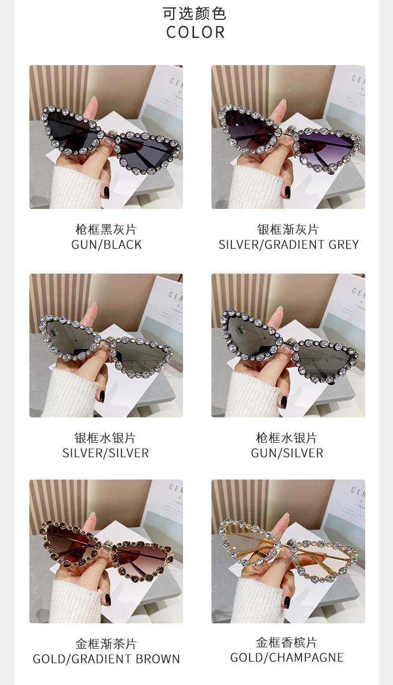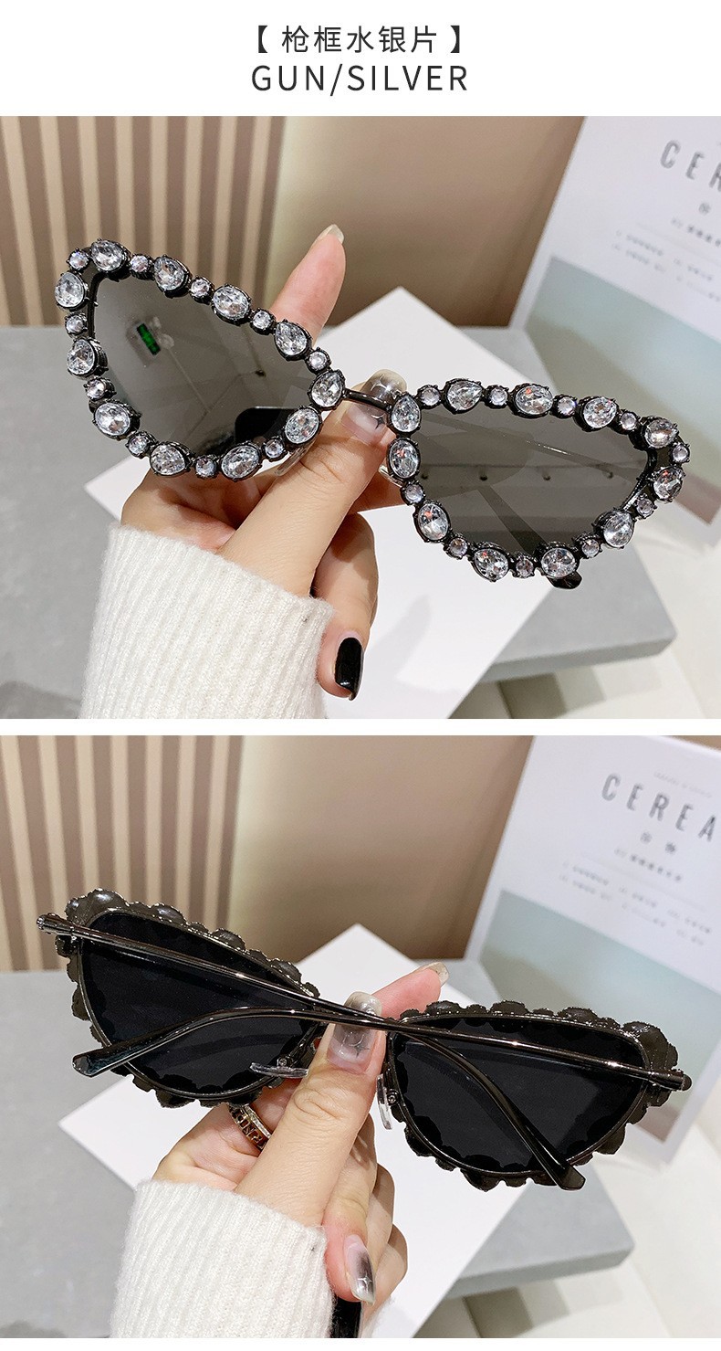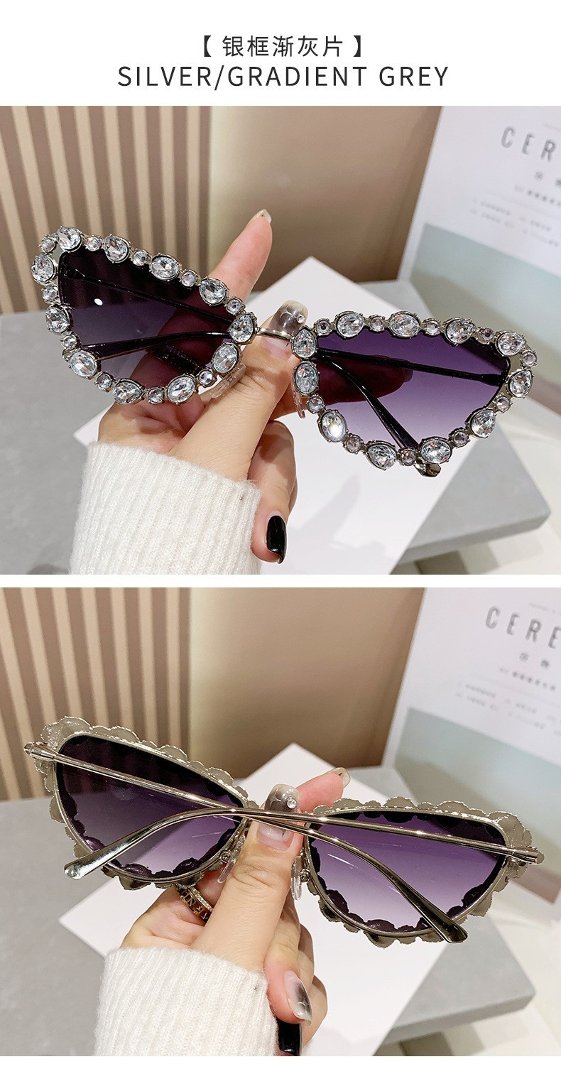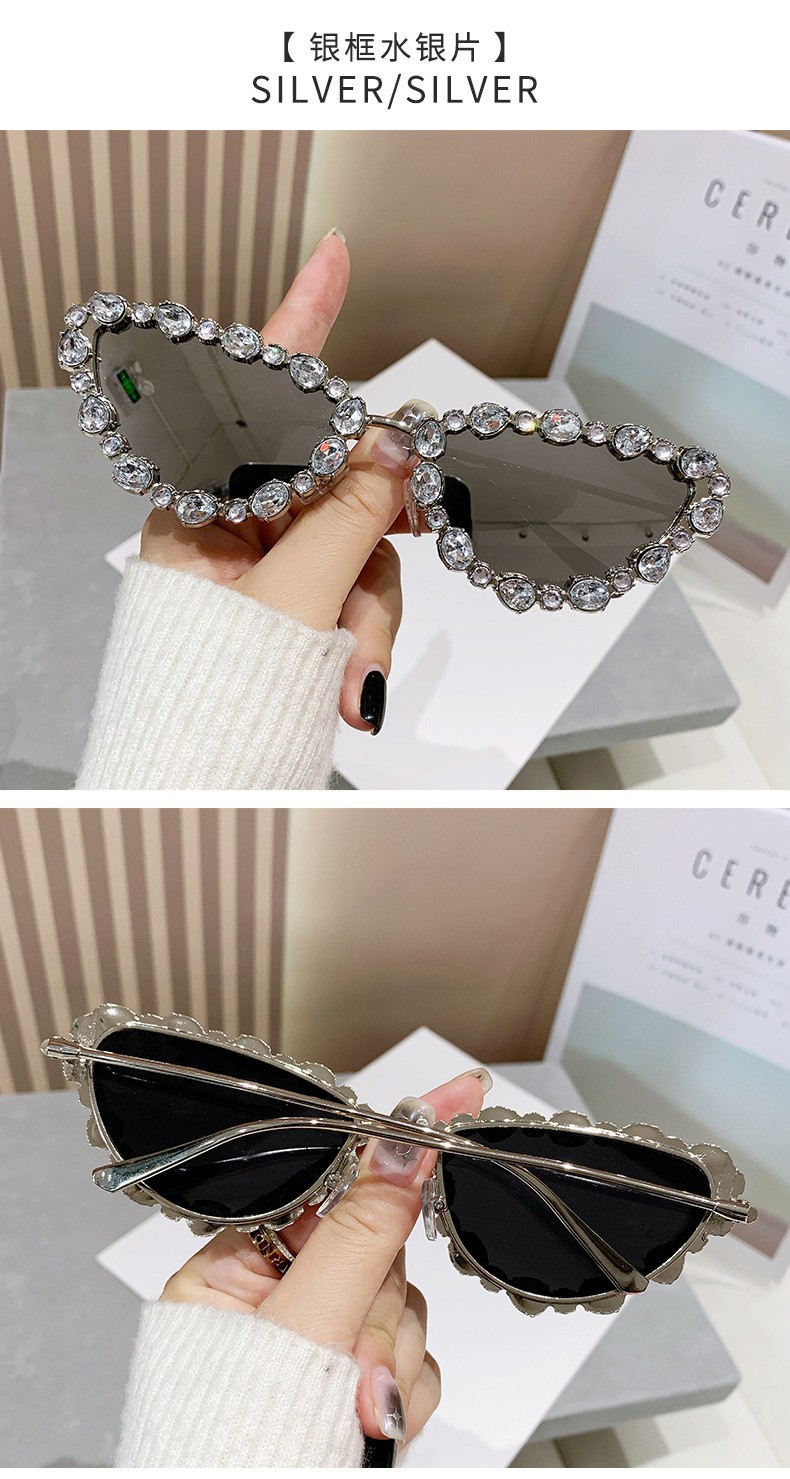 新款个性潮流复古欧美猫眼镜超大水钻太阳镜带钻金属墨镜跨境批发