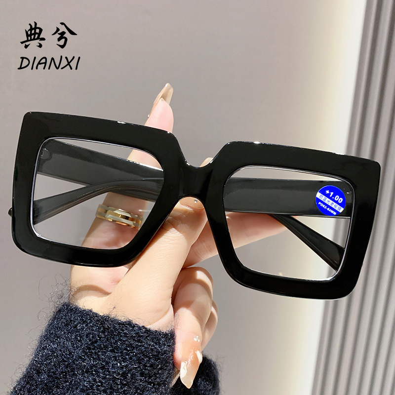 欧米のファッションの正方形の大きいフレームの老眼鏡の青い光のシンプルなまぶしい老眼鏡の平光鏡