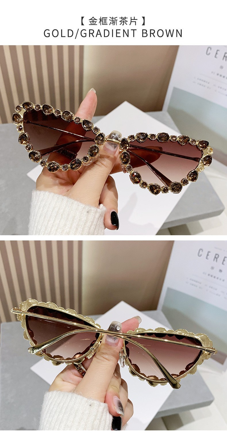 欧美跨境新款潮流个性太阳镜INS镶钻百搭金属猫眼防晒墨镜批发
