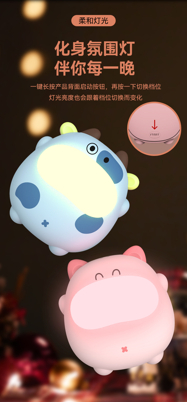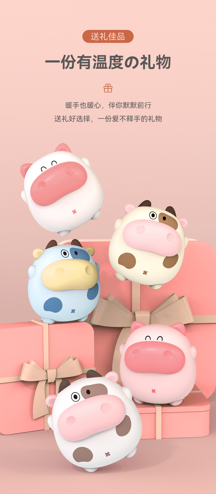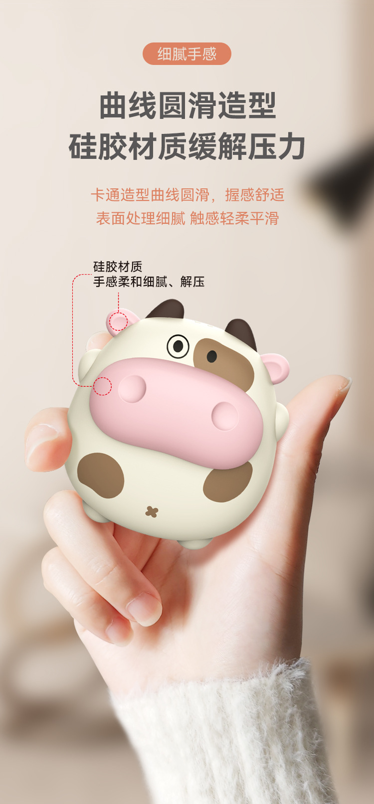 功能:萌趣造型、两档温度调节、快速发热、持久续航、轻巧便携、安全防爆 一份有温度的礼物