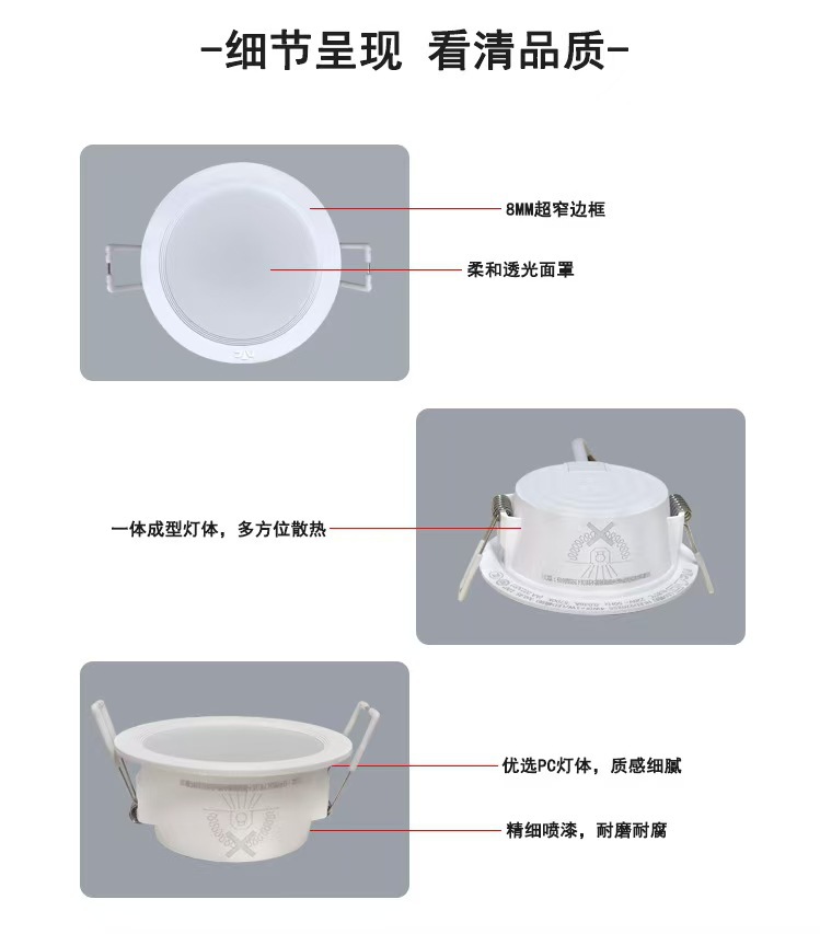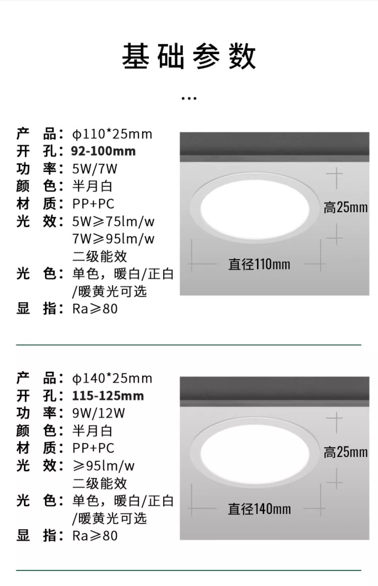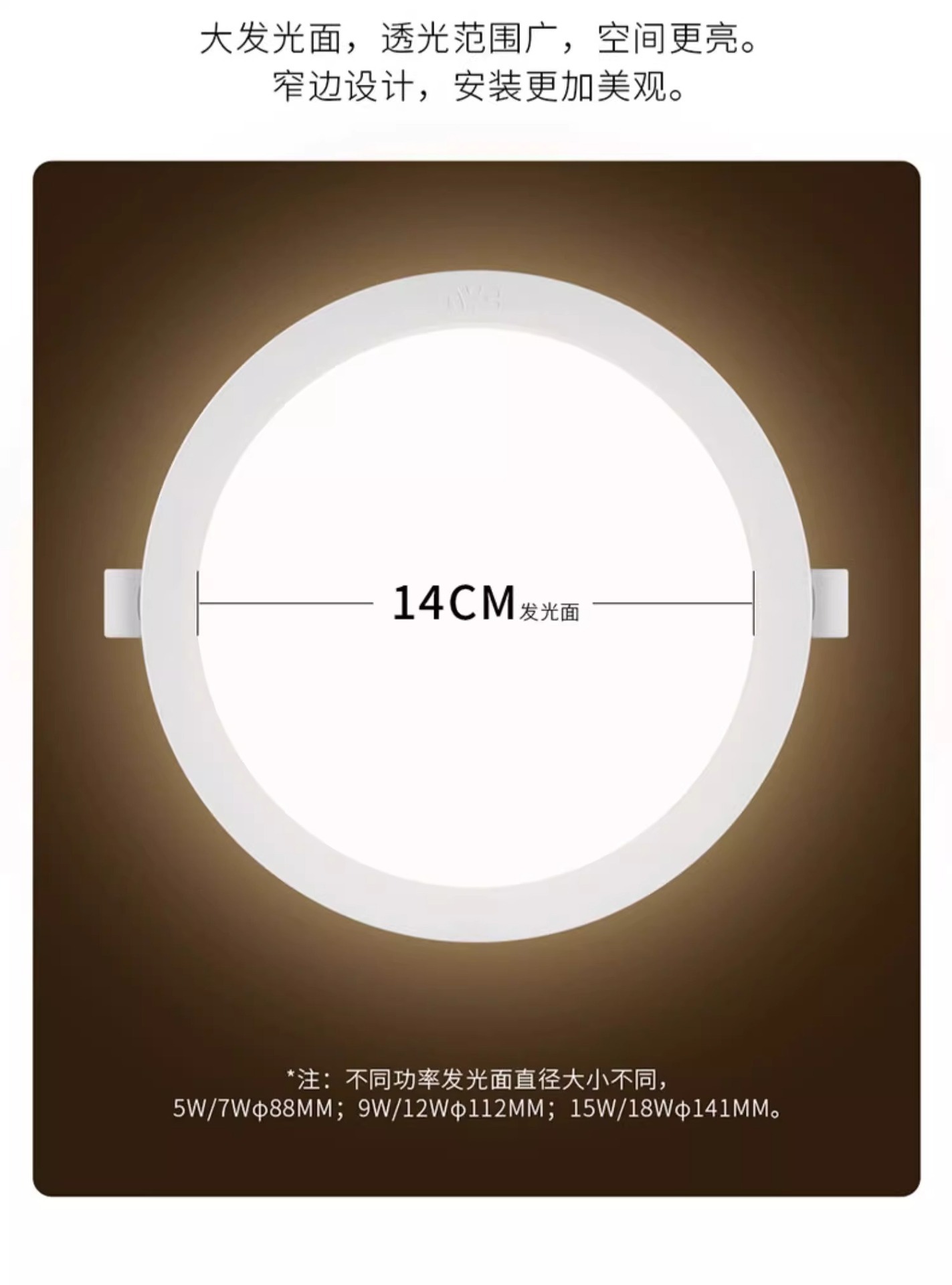 灯光颜色 【超薄款4W】开孔75mm,【超薄款6W】开孔95mm,【超薄款8W】开孔110mm,【超薄款12W】开孔120mm,【超薄款15W】开孔150mm,【超薄款20W】开孔200mm