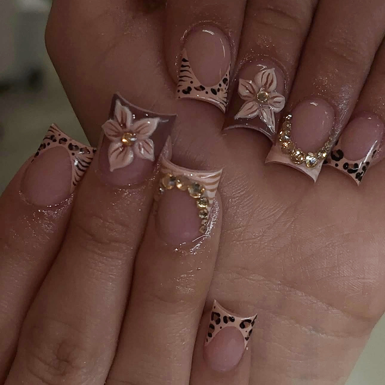 欧美法式豹纹浮雕美甲3d立体雕花甜酷辣妹穿戴甲外贸假指甲可拆卸