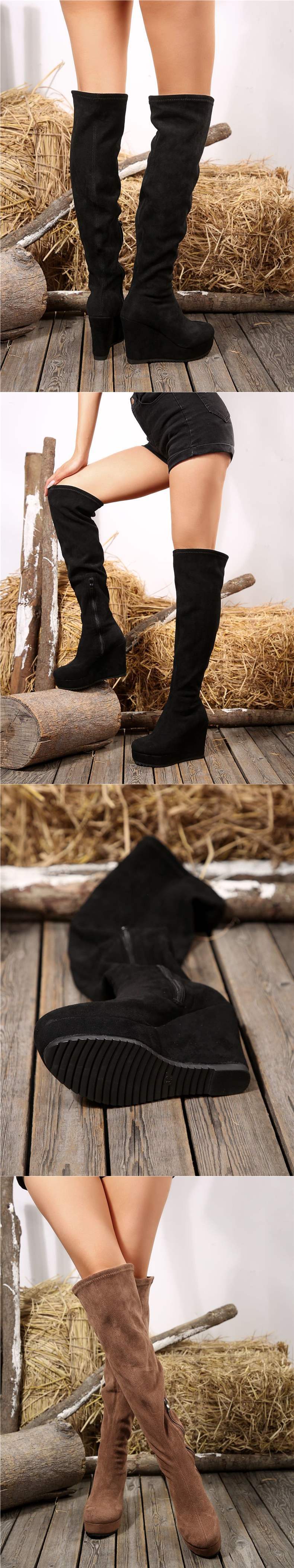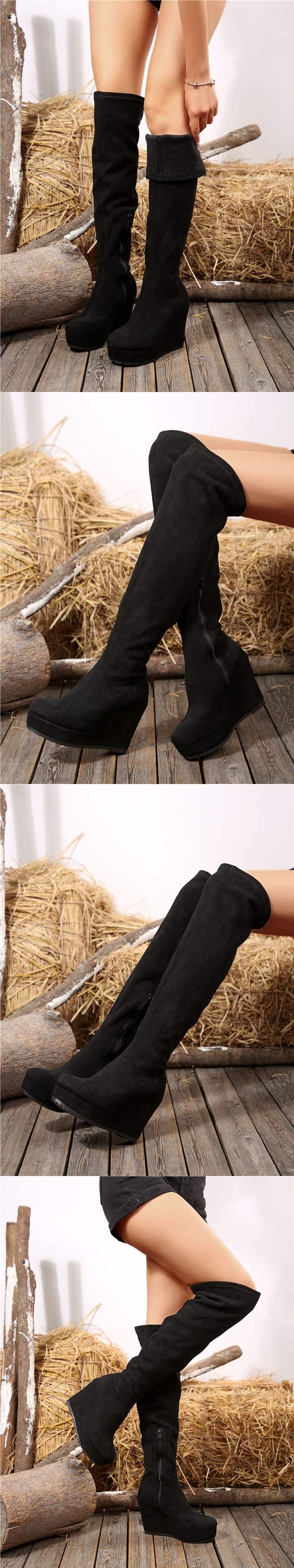 松糕靴子女秋冬加绒厚底百搭长筒靴10cm坡跟高跟过膝女靴弹力长靴