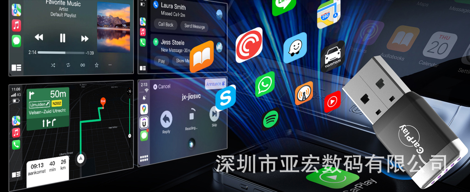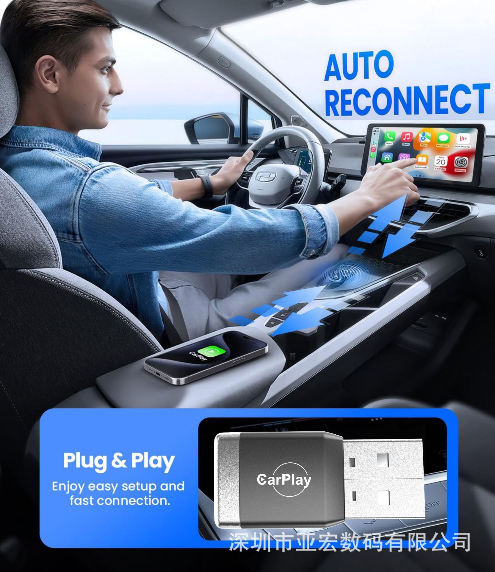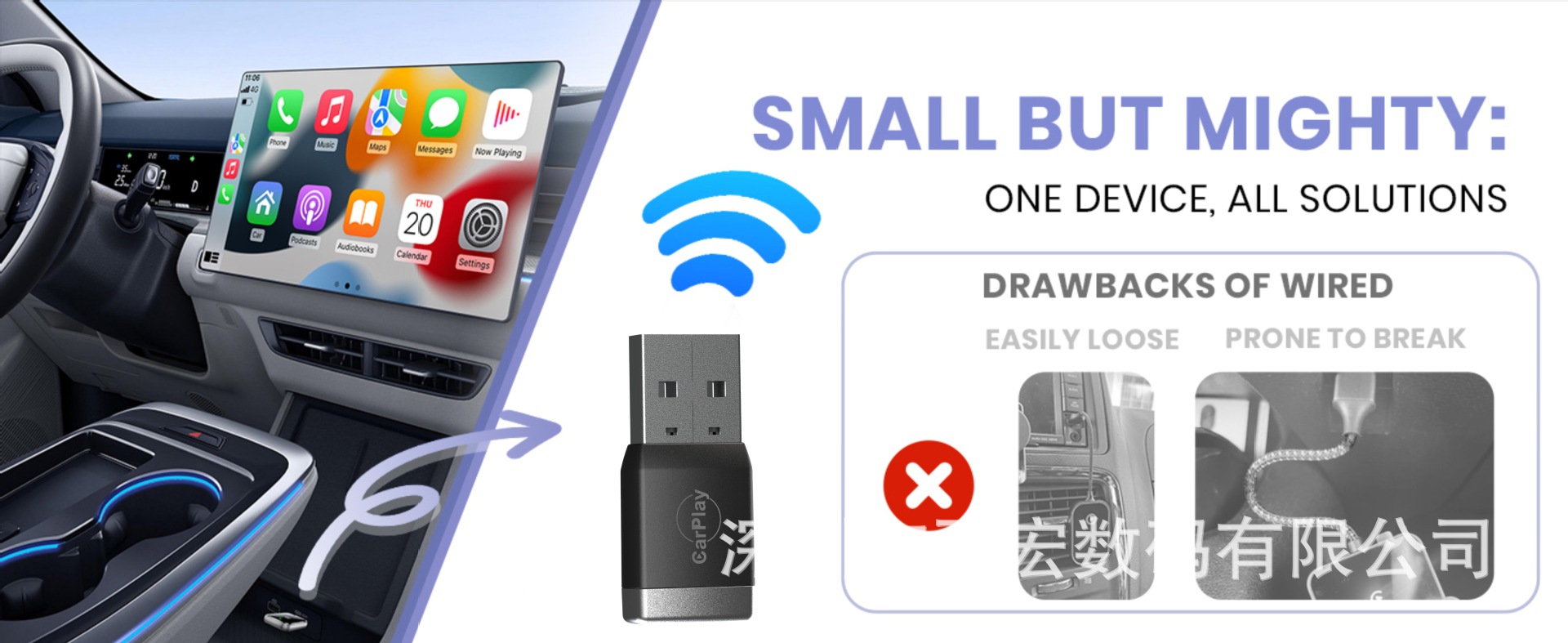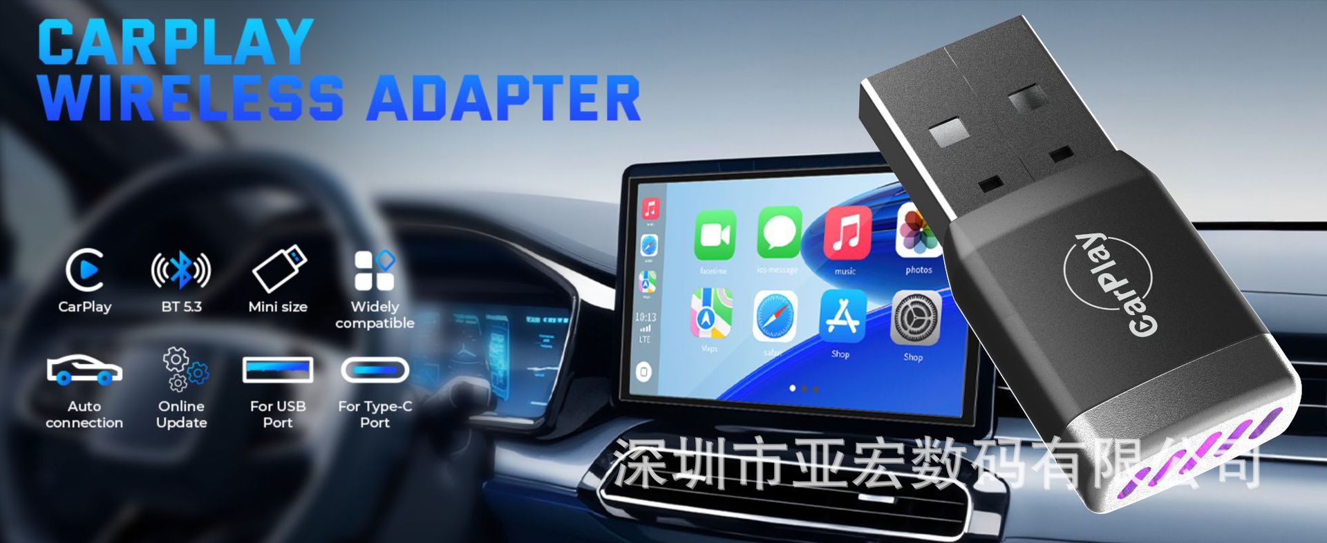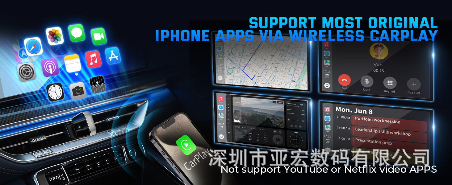 CP025 有線から無線へのCarPlayボックス 外貿向け車載インターネット接続ボックス スマートポータブルインターネット接続アダプター