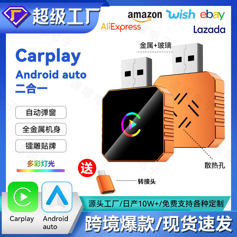 跨境无线caply盒子橙色2in1智能车载互联模块安卓Autocarplay盒子