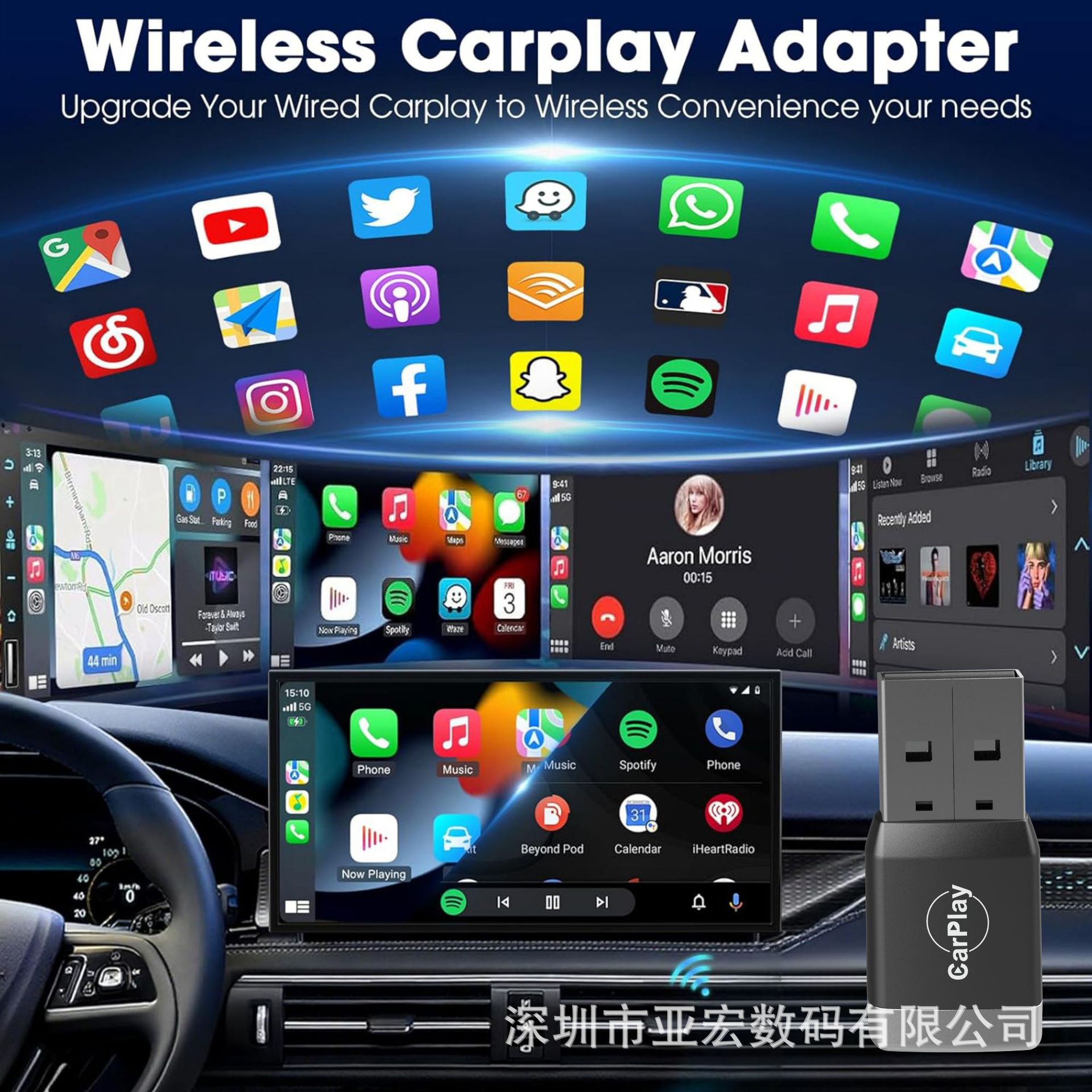 热销无线caply盒子二合一智能车载互联模块安卓Autocarplay盒子