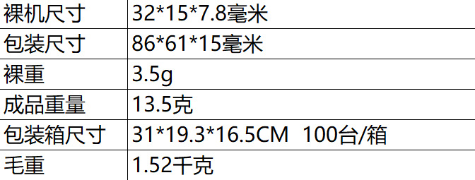 外观尺寸 3.2*1.5*0.7cm