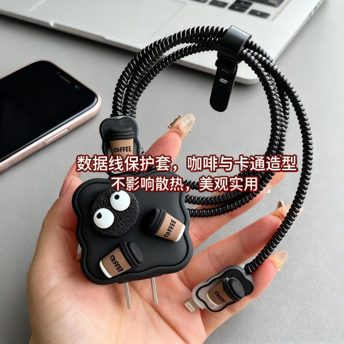 黑煤球咖啡40W充电器保护套适用iPhone17 17Promax数据线咬线器