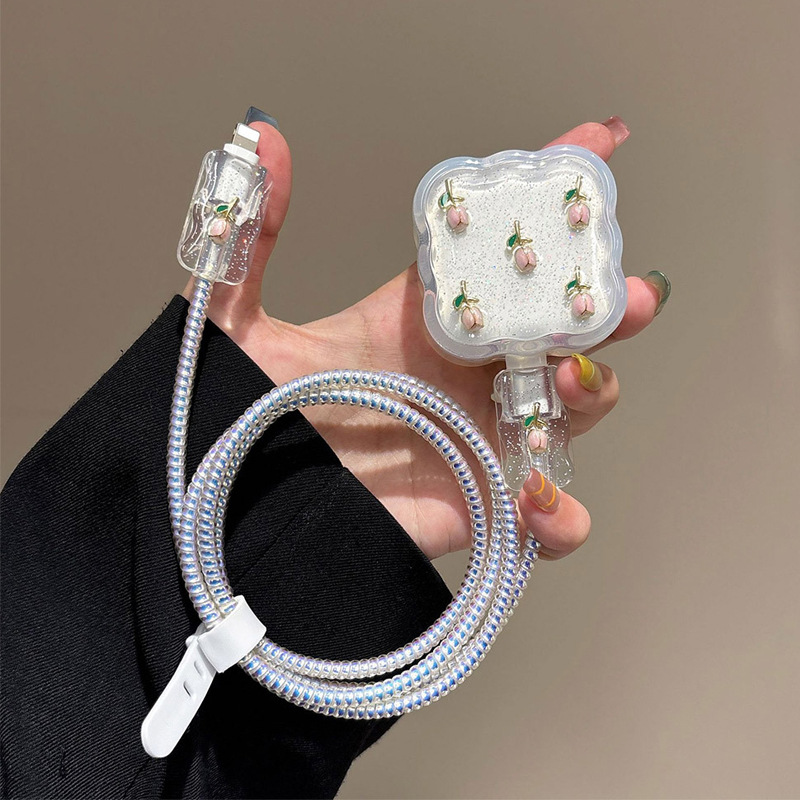 ドリップピンク蝶適用アップルデータケーブル保護カバー携帯電話急速充電20w充電器保護カバー