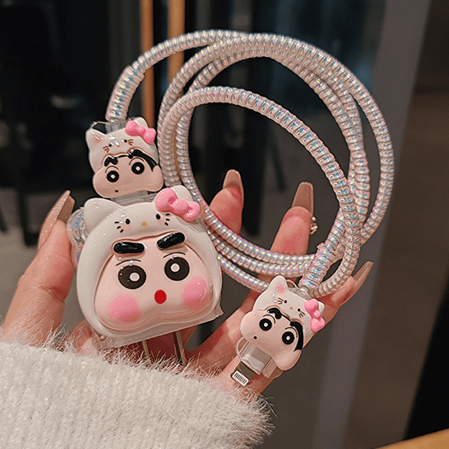 可爱充电器保护套适用苹果18w/20w快充头15plus数据线咬线器tpu壳