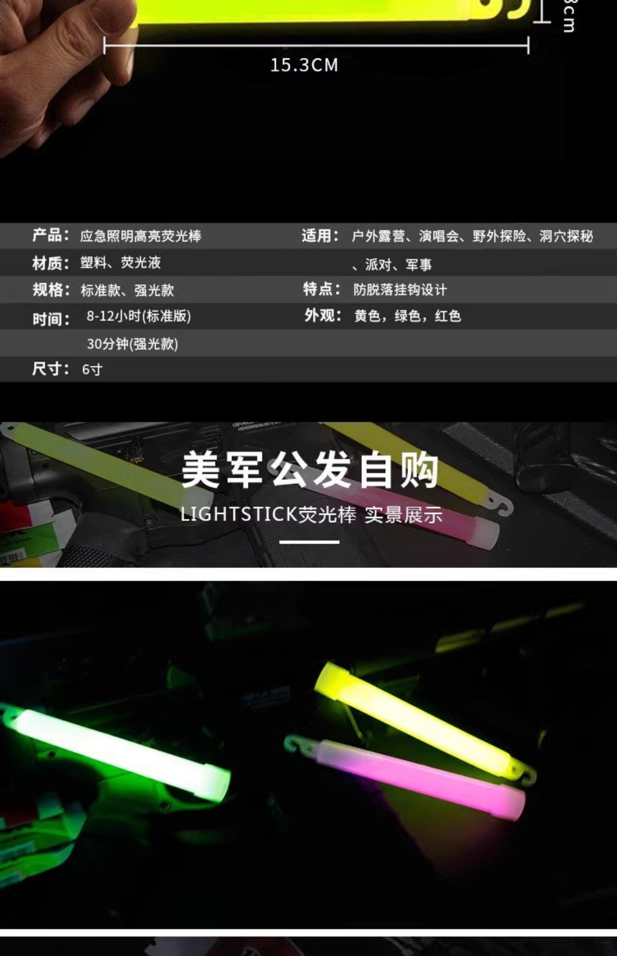 应急救援6寸军规战术荧光棒夜光棒户外探险救生棒抢险棒背心配件