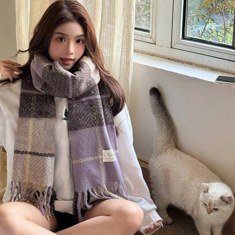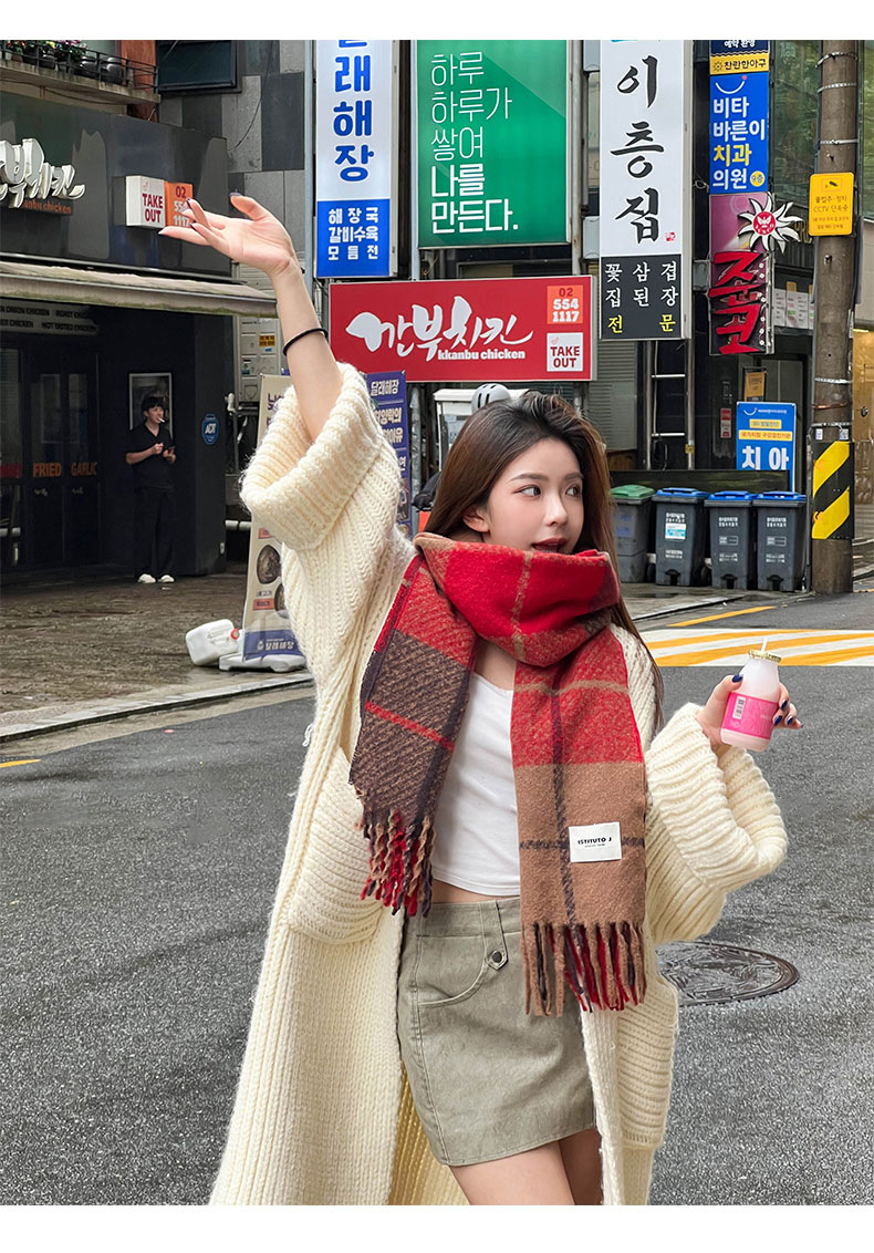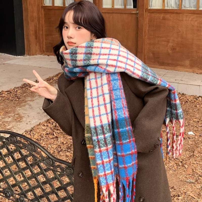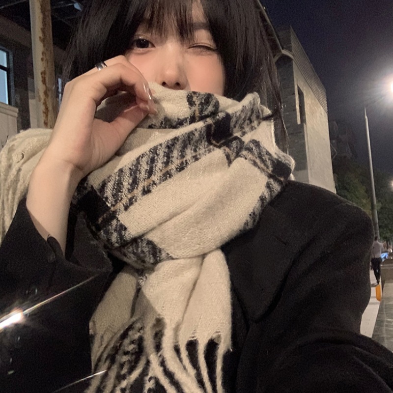 格子大集合 ~ 韓系格子流蘇insマフラー女子秋冬百合学生保温雰囲気感マフラー