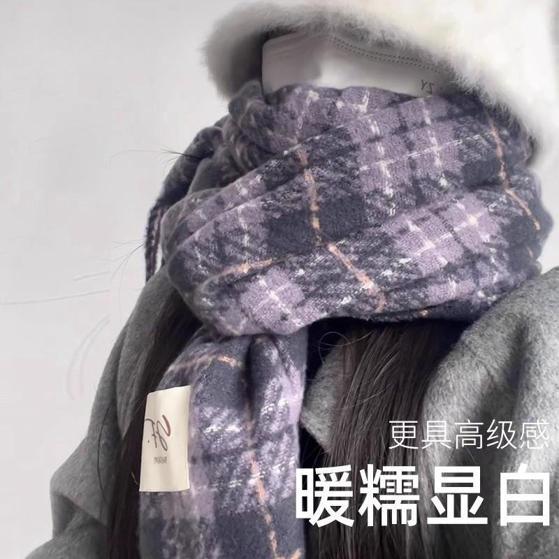 2024新型格子マフラー女性冬韓国版レトロ高級感百合厚保温マフラー女性ins