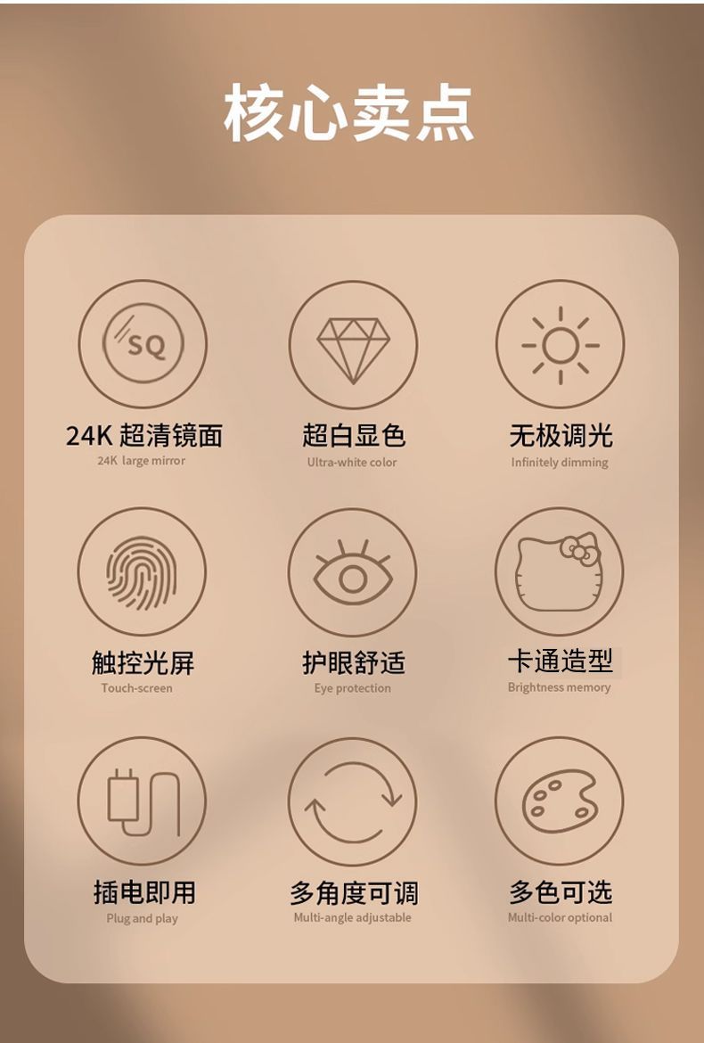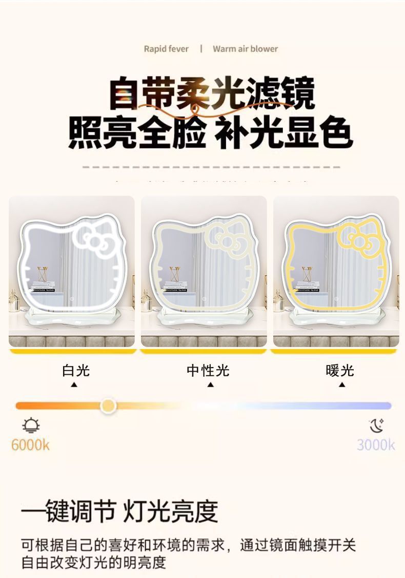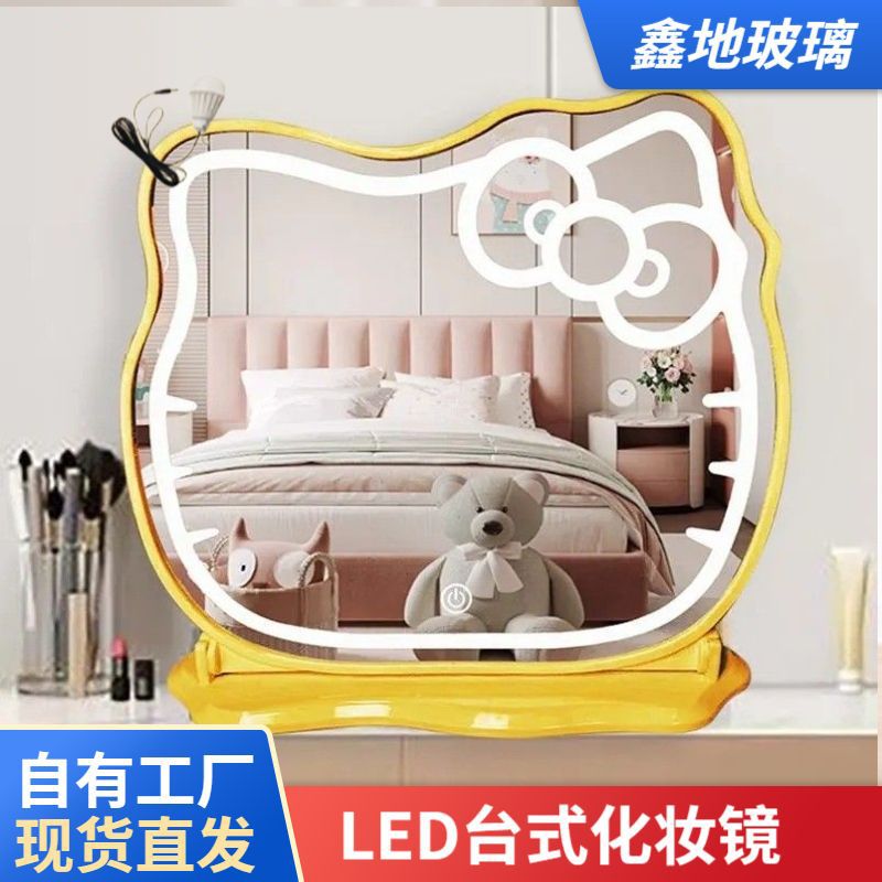 hello kitty猫化妆镜台式桌面led智能带灯家用卧室梳妆台梳妆镜